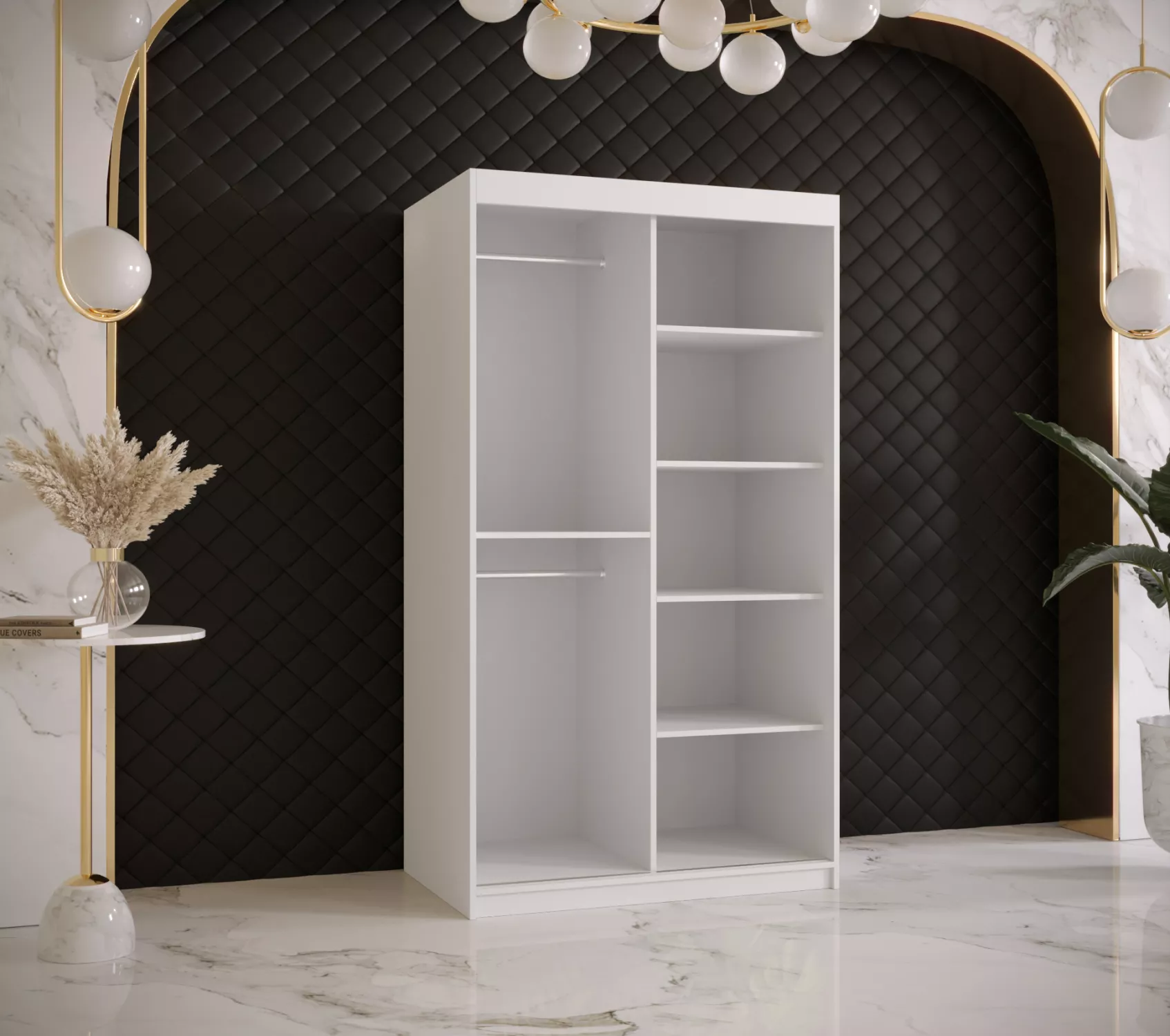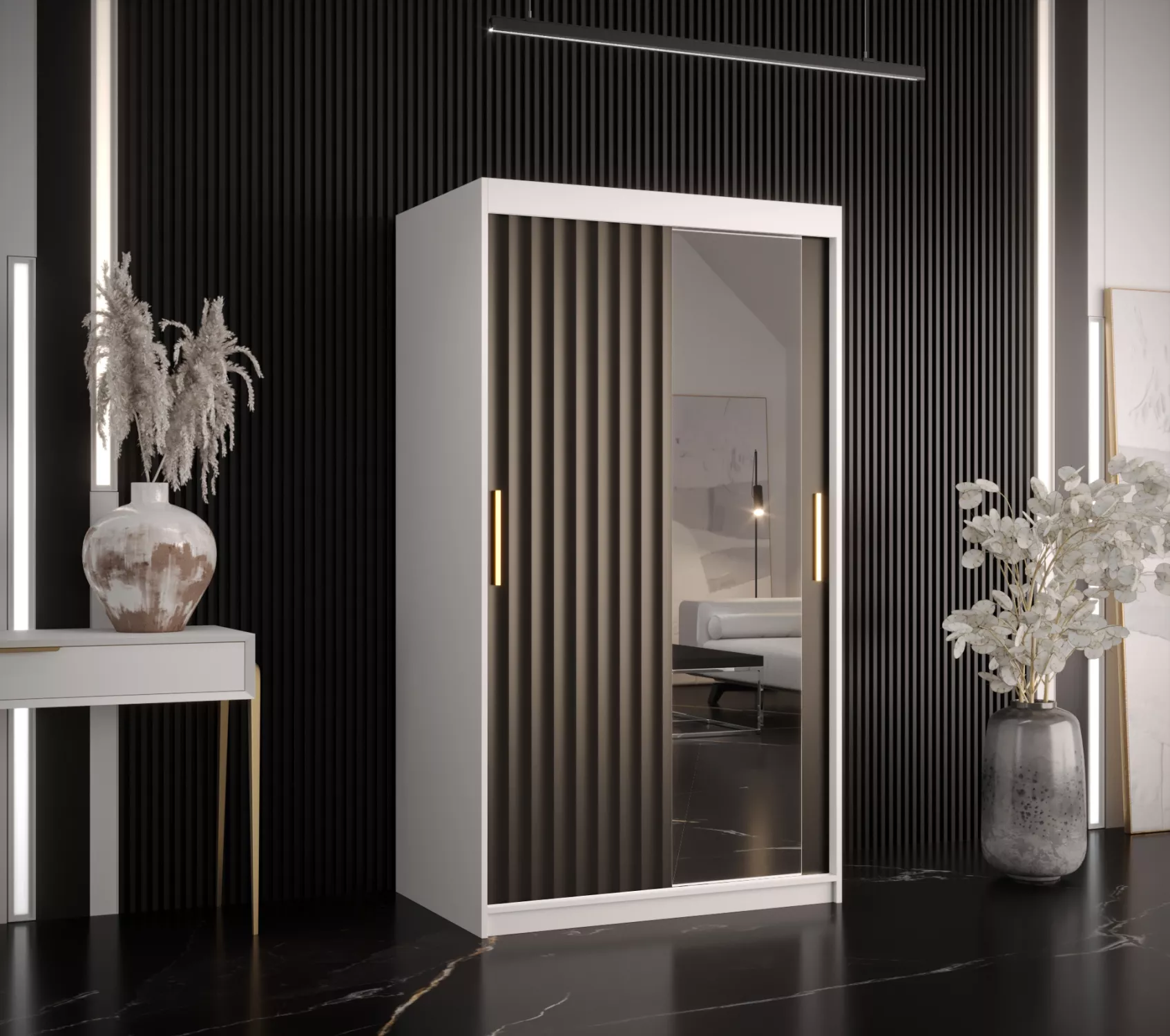 Šatní skříň se zrcadlem RADKIN 2 - šířka 100 cm, bílá / černá