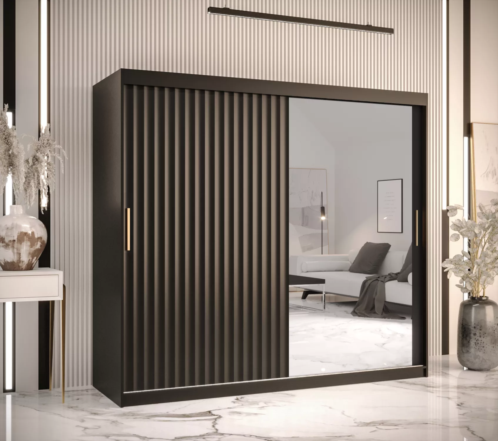 Šatní skříň se zrcadlem RADKIN 2 - šířka 200 cm, černá