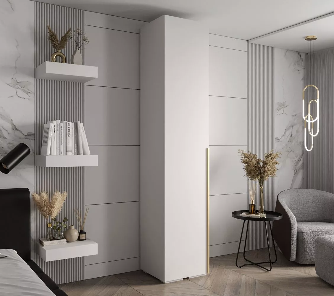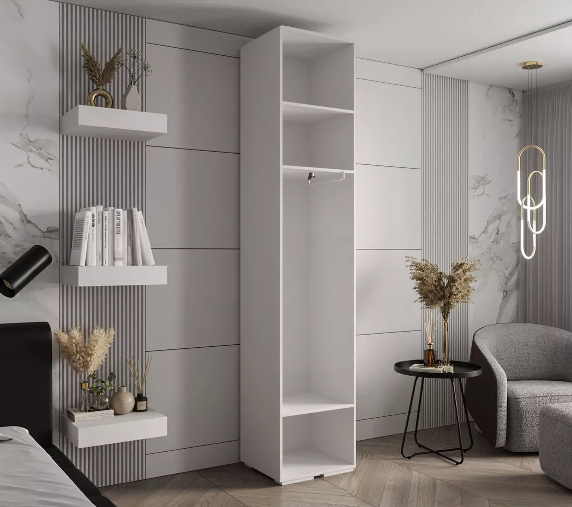 Předsíňová skříň SAVELA 1 se hodí do všech menších předsíní ale i ložnic či šaten. Disponuje výsuvným věšákem a 3 policemi.