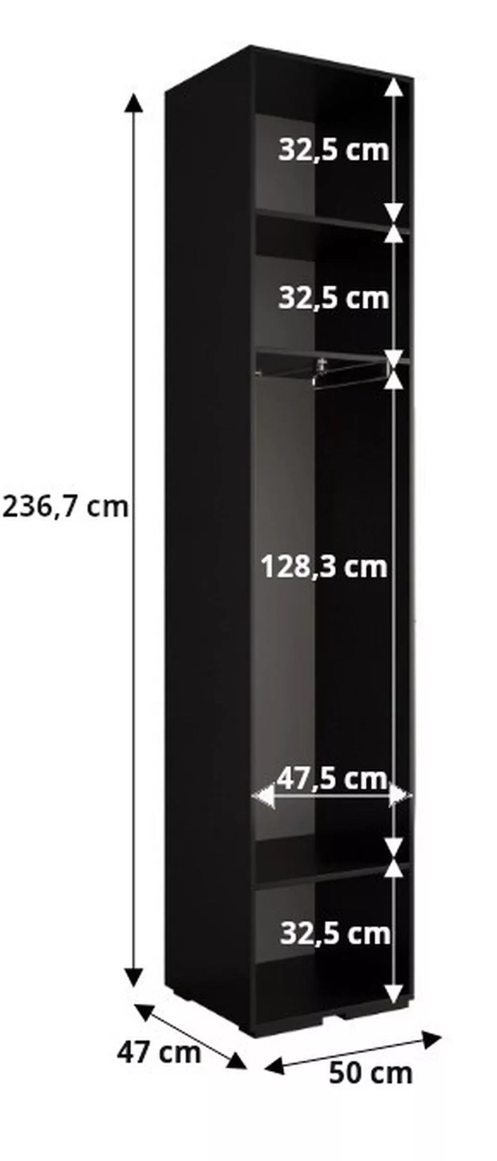 Předsíňová skříň SAVELA 1 se hodí do všech menších předsíní ale i ložnic či šaten. Disponuje výsuvným věšákem a 3 policemi.