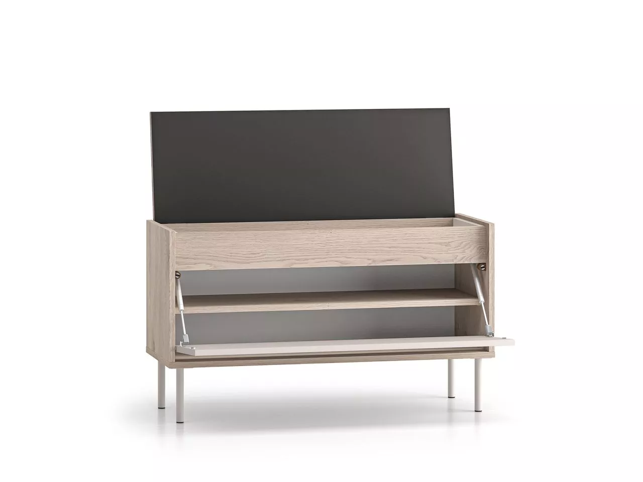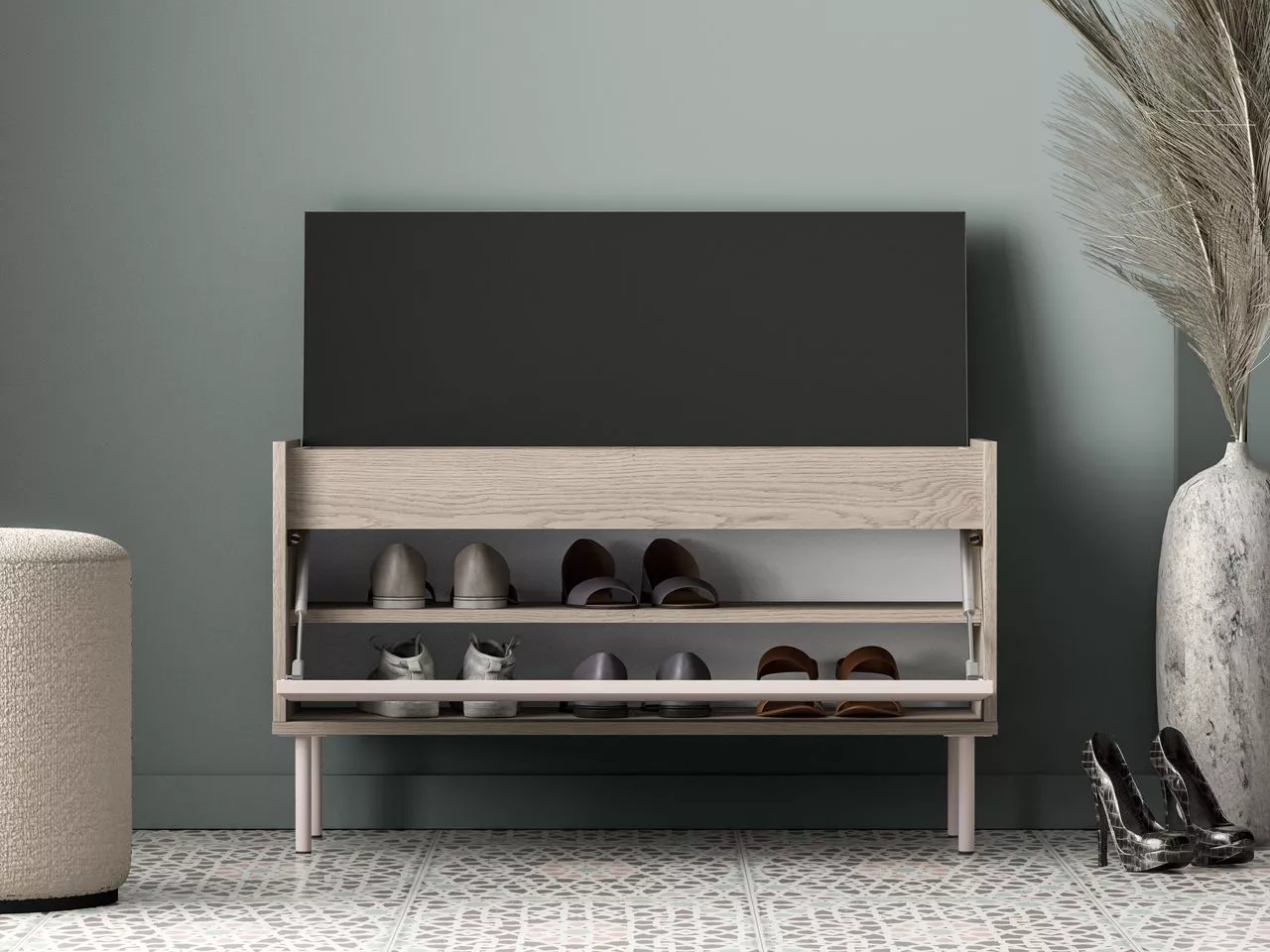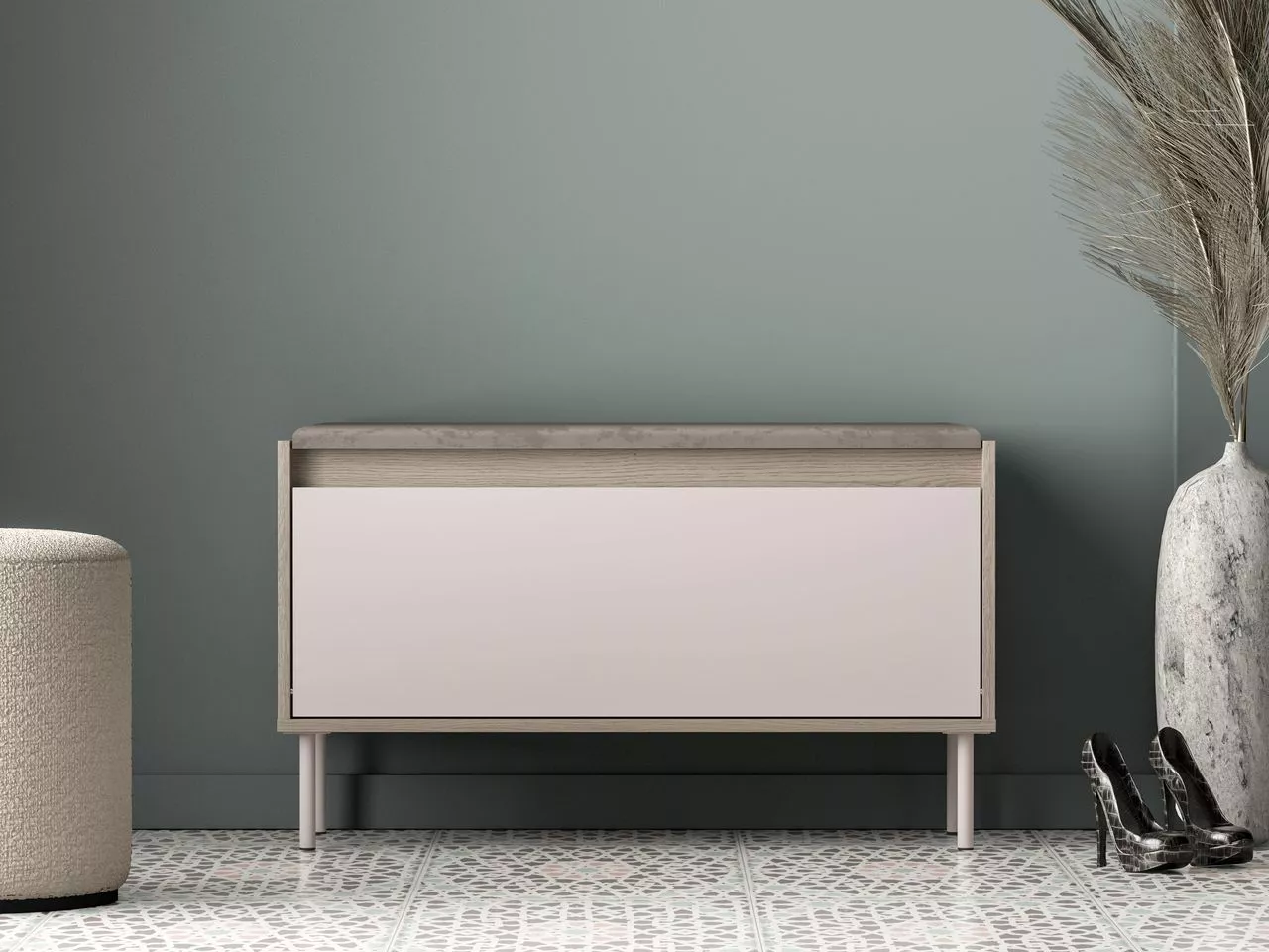 Sedací výklopný botník RENATE se stane nezbytným vybavením každé předsíně nebo chodby. Disponuje výklopnými dvířky, za kterými jsou 2 přihrádky pro uschování bot. Pod výklopným sedákem se schovává další úložný prostor pro uložení potřebných dokumentů nebo klíčů.