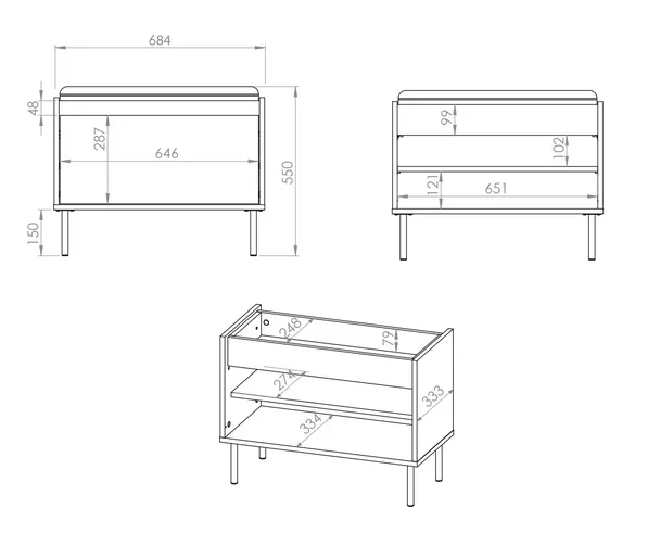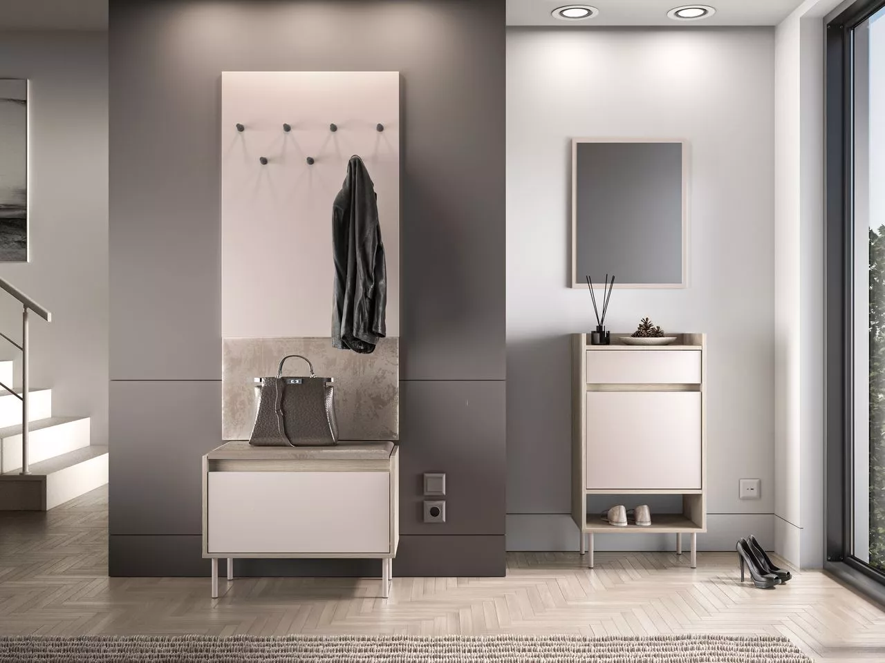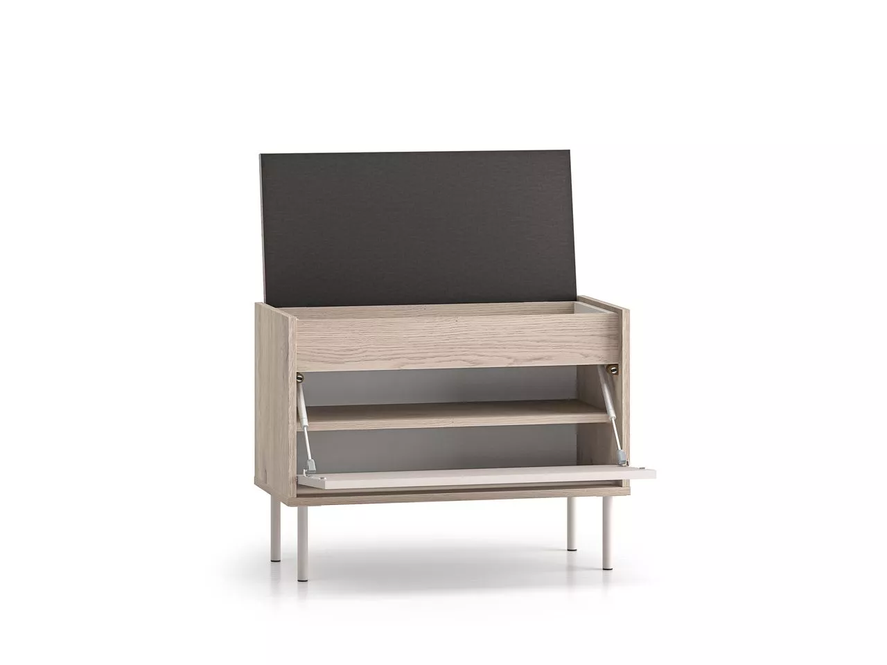 Výklopný botník se sedákem RENATE se stane nezbytným vybavením každé předsíně nebo chodby. Disponuje výklopnými dvířky, za kterými jsou 2 přihrádky pro uschování bot. Pod výklopným sedákem se schovává další úložný prostor pro uložení potřebných dokumentů nebo klíčů.