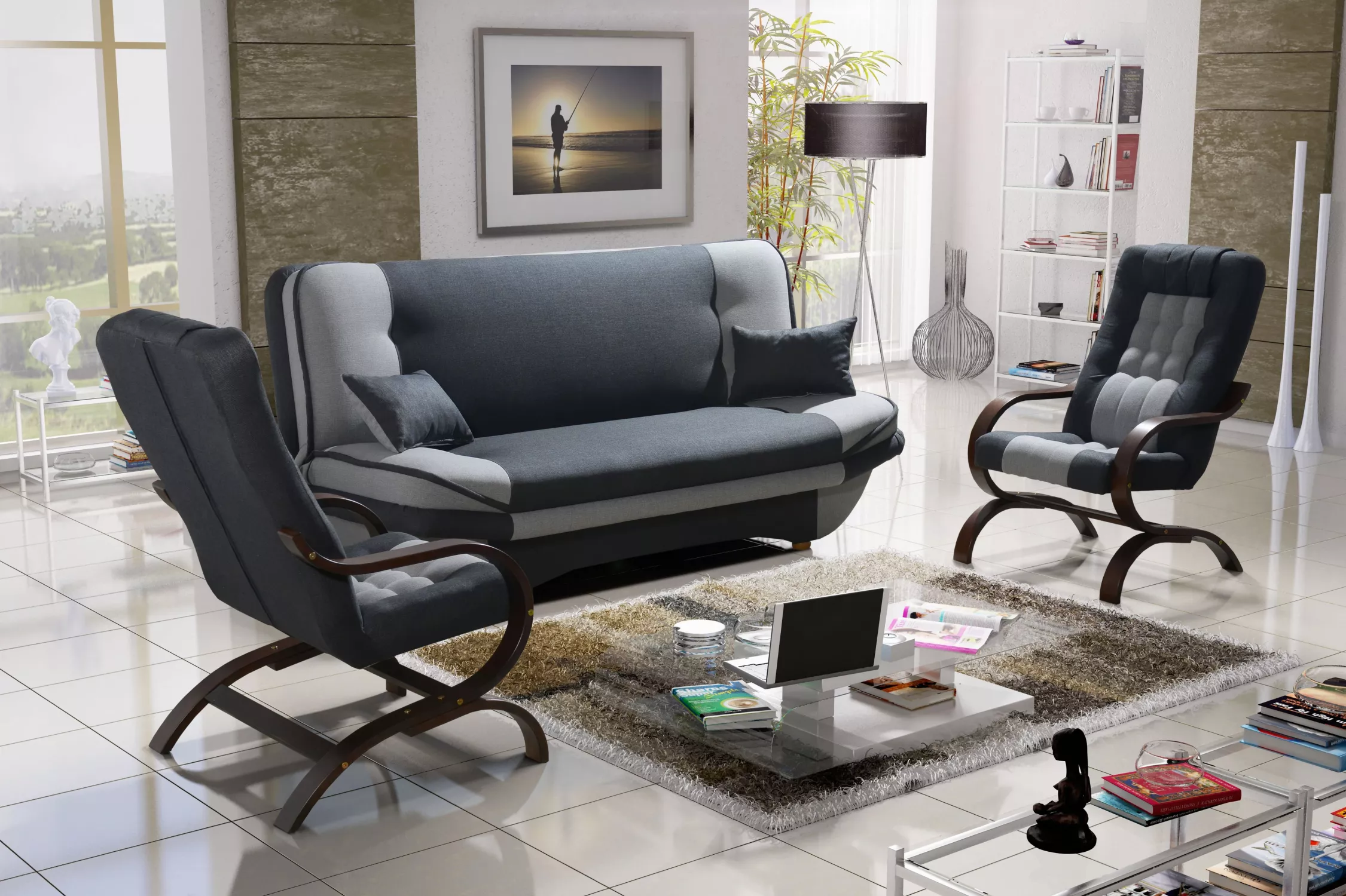 Sedací sestava INGRIDA - tmavě modrá / šedá / ořech