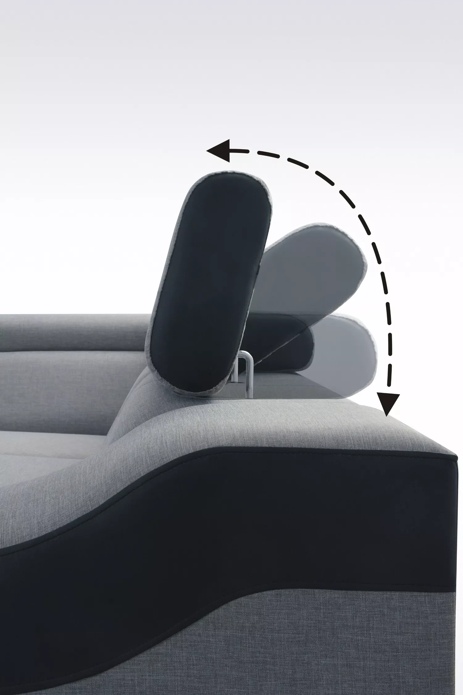 Velká sedací souprava GALJA vytvoří v interiéru jedinečnou relaxační zónu. Příjemné čalounění a nastavitelné opěrky hlavy poskytují maximální pohodlí při odpočinku.