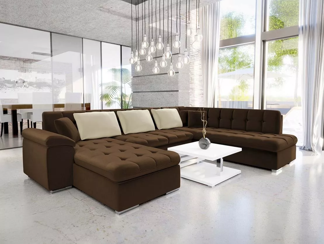 Rohová rozkládací sedačka navržená do písmene U NELLI 1 určitě osloví fanoušky mimořádné elegance ve skutečně hollywoodském vydání. Zvláštní pozornost je třeba věnovat široké loketní opěrce a 2 lenoškám, které výrazně zvyšují komfort. Sedačka nabízí funkci každodenního spaní o ploše 125x290 cm.