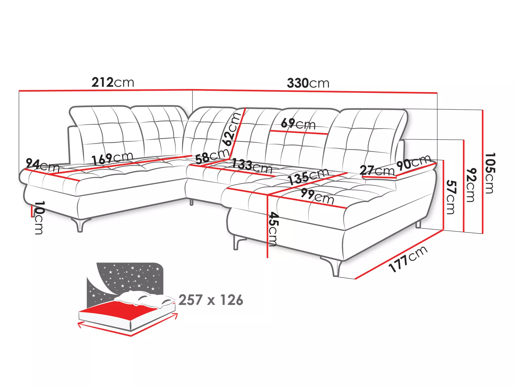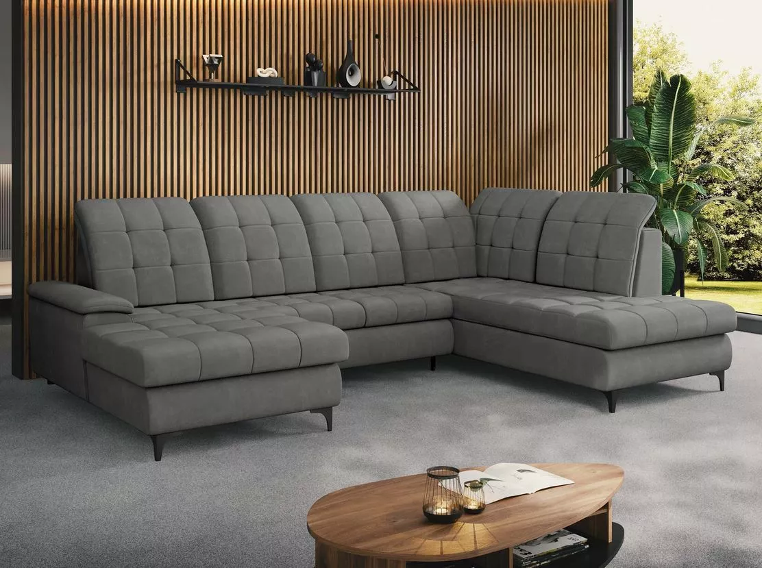 Rozkládací sedačka do U FRIONA dokonale zapadá do nejnovějších designových trendů. Rozložením se změní na plnohodnotné lůžko o spací ploše 126x257 cm. Polohovatelné opěrky hlavy vám umožní najít správnou pozici pro relaxaci. Nechybí ani 2 praktické úložné prostory.