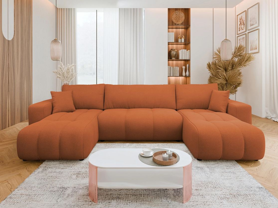 Sedačka do tvaru U EXETER se stane dominantou vašeho obývacího pokoje, kde vytvoří útulnou atmosféru. Poskytuje dostatek místa pro větší počet osob. Díky bočním částem si můžete pohodlně natáhnout nohy, což zvyšuje komfort při sledování televize nebo čtení. Sedačku lze navíc rozložit na spací lůžko o rozměrech 132x274 cm, navíc je vybavena úložným prostorem.
