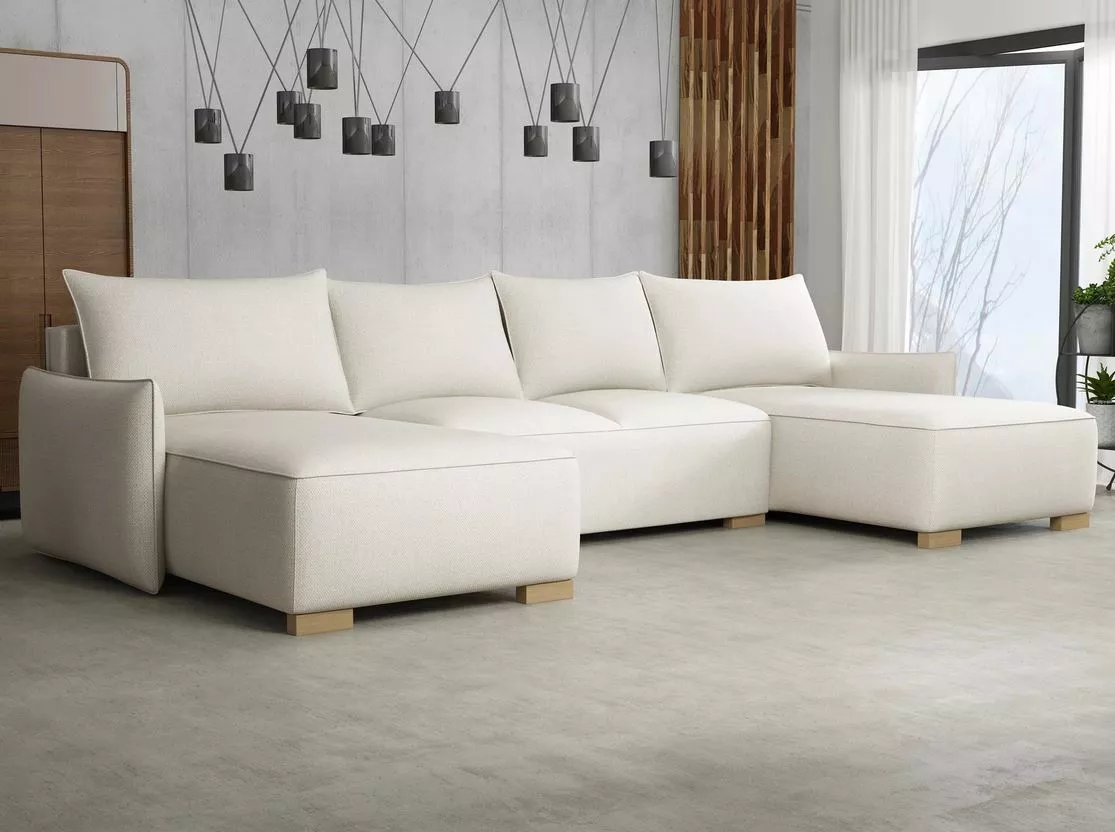 Sedačka do tvaru písmene U MOLENCIA nabízí velkorysý prostor k sezení a nadčasový minimalistický design. Masivní nožky zajišťují stabilitu, zatímco praktický úložný prostor poskytuje místo pro lůžkoviny. Snadný rozkládací mechanismus umožňuje přeměnu sedačky na lůžko o rozměrech 140x305 cm, které je vhodné i pro každodenní spaní.