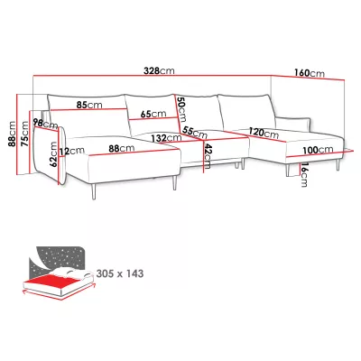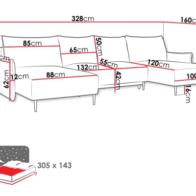 Rozkládací rohová sedačka do U SULMA nabízí velkorysý prostor pro odpočinek a relaxaci. Módní design společně s měkkými opěrnými polštáři poskytuje maximální pohodlí. Praktický úložný prostor usnadňuje organizaci lůžkovin. Sedačku lze snadno rozložit na každodenní spaní, čímž vznikne pohodlné lůžko o rozměrech 143x305 cm, ideální pro kvalitní odpočinek.