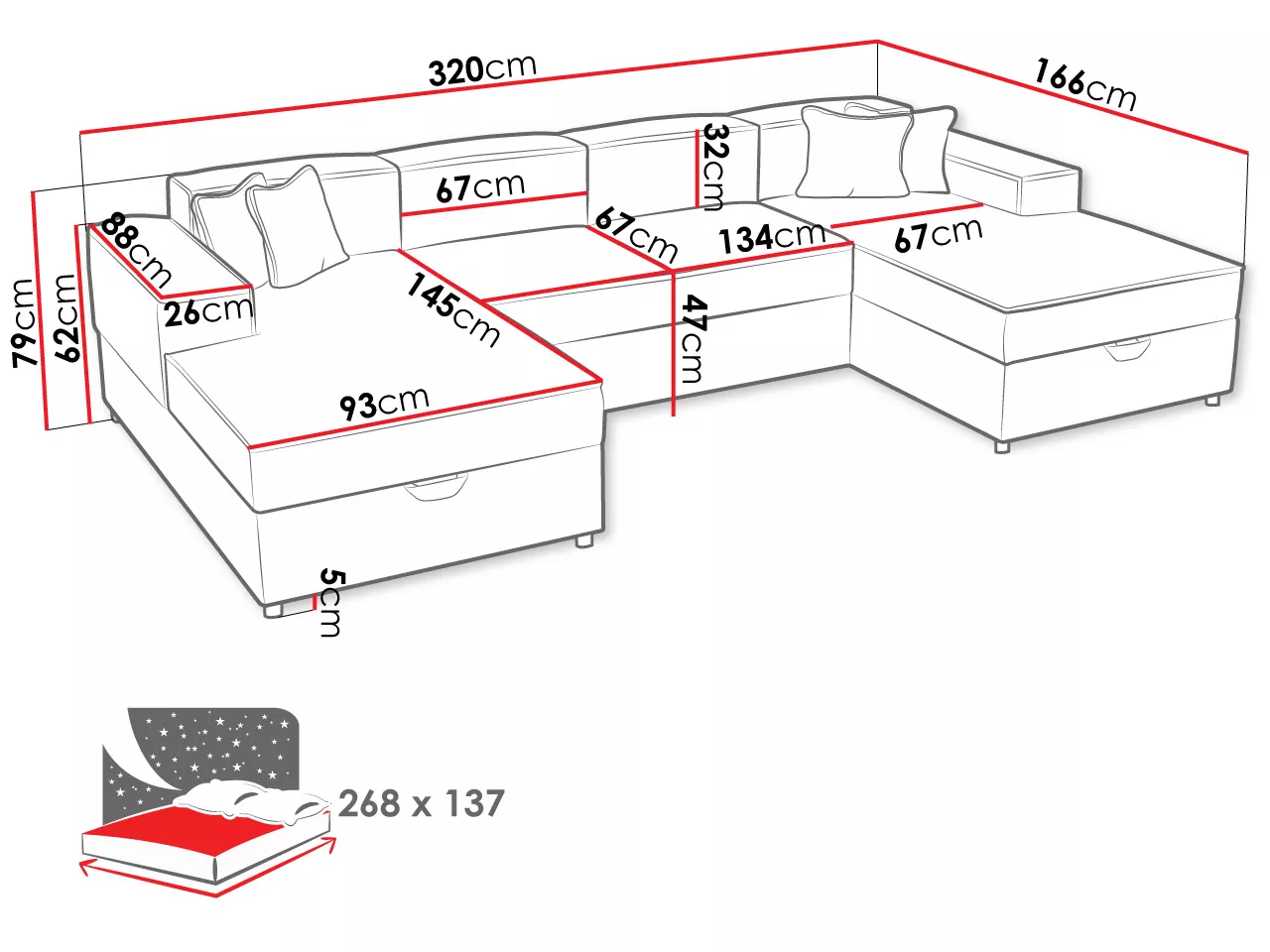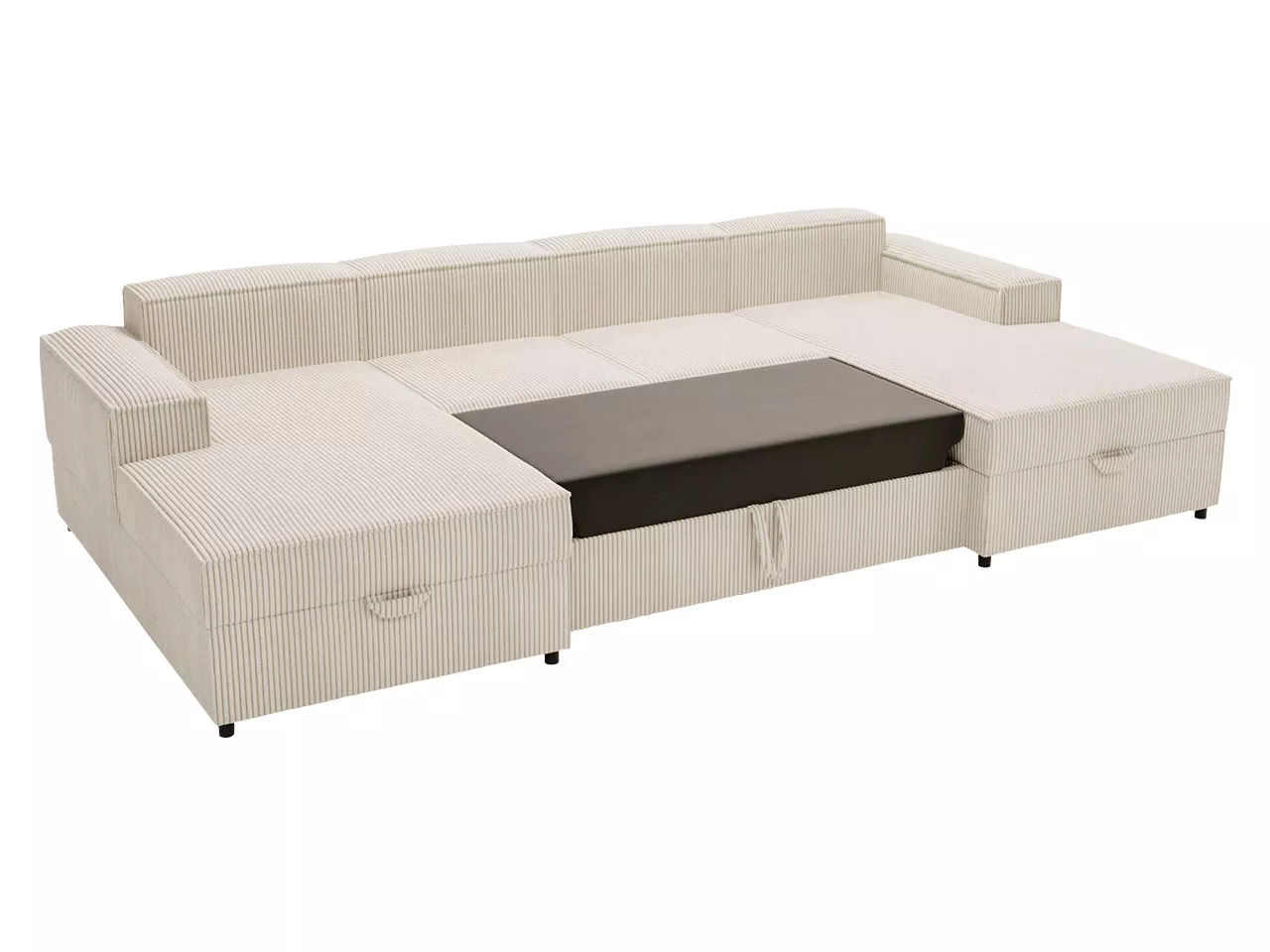 Rohová sedačka do tvaru písmene U BOKSIA kombinuje moderní design s vynikajícím komfortem a funkčností. Díky 2 úložným prostorům na lůžkoviny zůstane váš prostor uspořádaný. Měkká manšestrová látka zajišťuje příjemný a útulný pocit při každodenním používání. Sedačka se snadno přemění na prostorné lůžko o velikosti 137x268 cm, ideální pro odpočinek nebo přespání hostů.