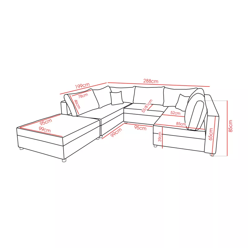 Rozkládací sedací souprava do U s taburetem AURORA 1 je pevný, odolný a pohodlný kus nábytku. Sedačku snadno přeměníte na lůžko o spací ploše 180x275 cm, které je vhodné i na každodenní spaní. Navíc souprava disponuje úložným prostorem, ve kterém snadno schováte lůžkoviny nebo sezónní oblečení.