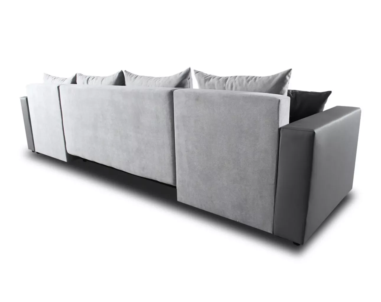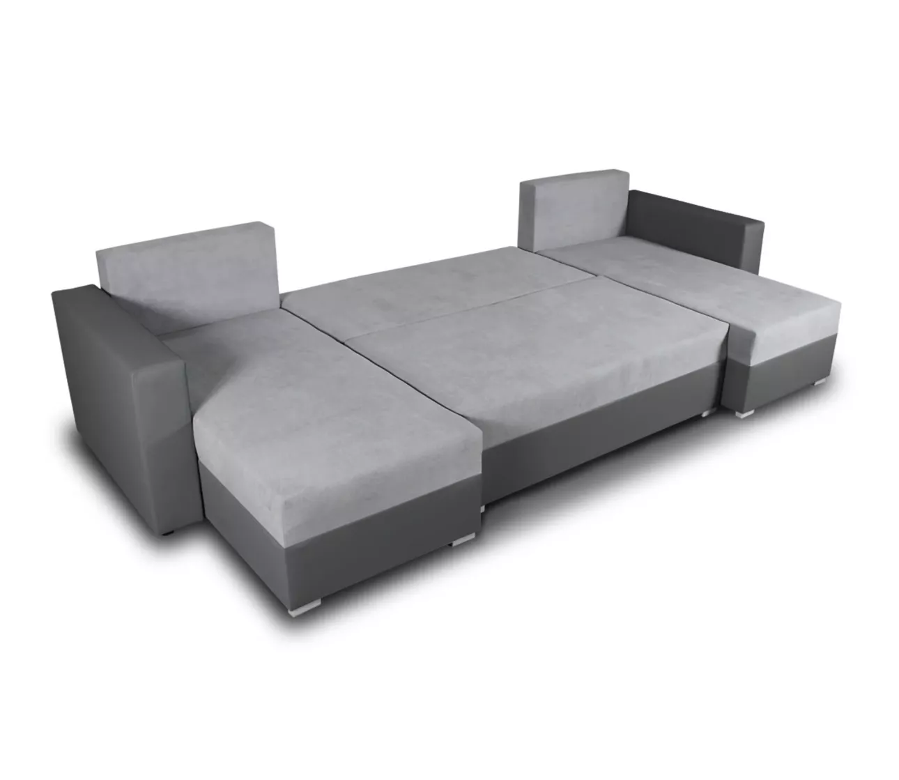 Rozkládací sedačka do tvaru U MOSREN - bílá ekokůže / šedá