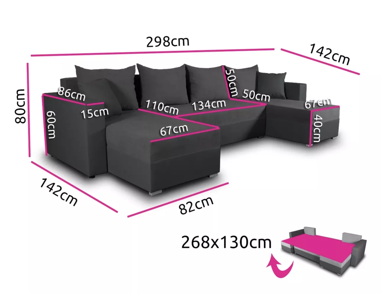 Rozkládací sedačka do tvaru U MOSREN je ideální volbou pro ty, kteří hledají maximální pohodlí a styl v jednom. Nabízí velkorysý prostor pro sezení, možnost rozložení na lůžko o rozměrech 130x268 cm i praktický úložný prostor. Kombinace měkké potahové látky a elegantní ekokůže zajišťuje moderní vzhled a snadnou údržbu.