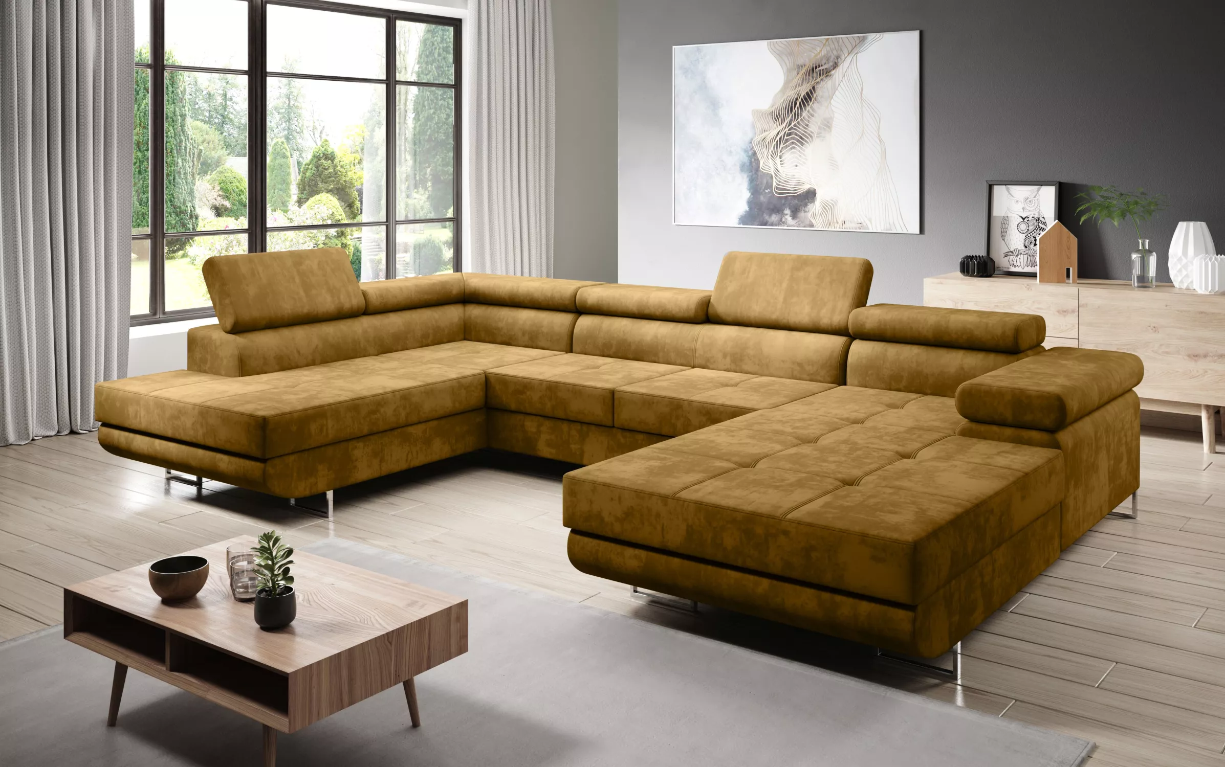 Rozkládací sedací souprava do U PARASKA - hořčicová
