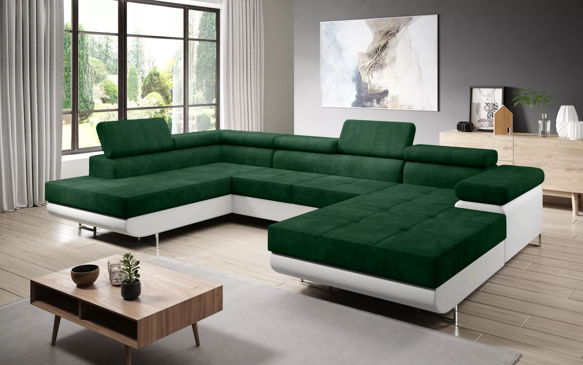 Rozkládací sedací souprava do U PARASKA - bílá / láhvově zelená
