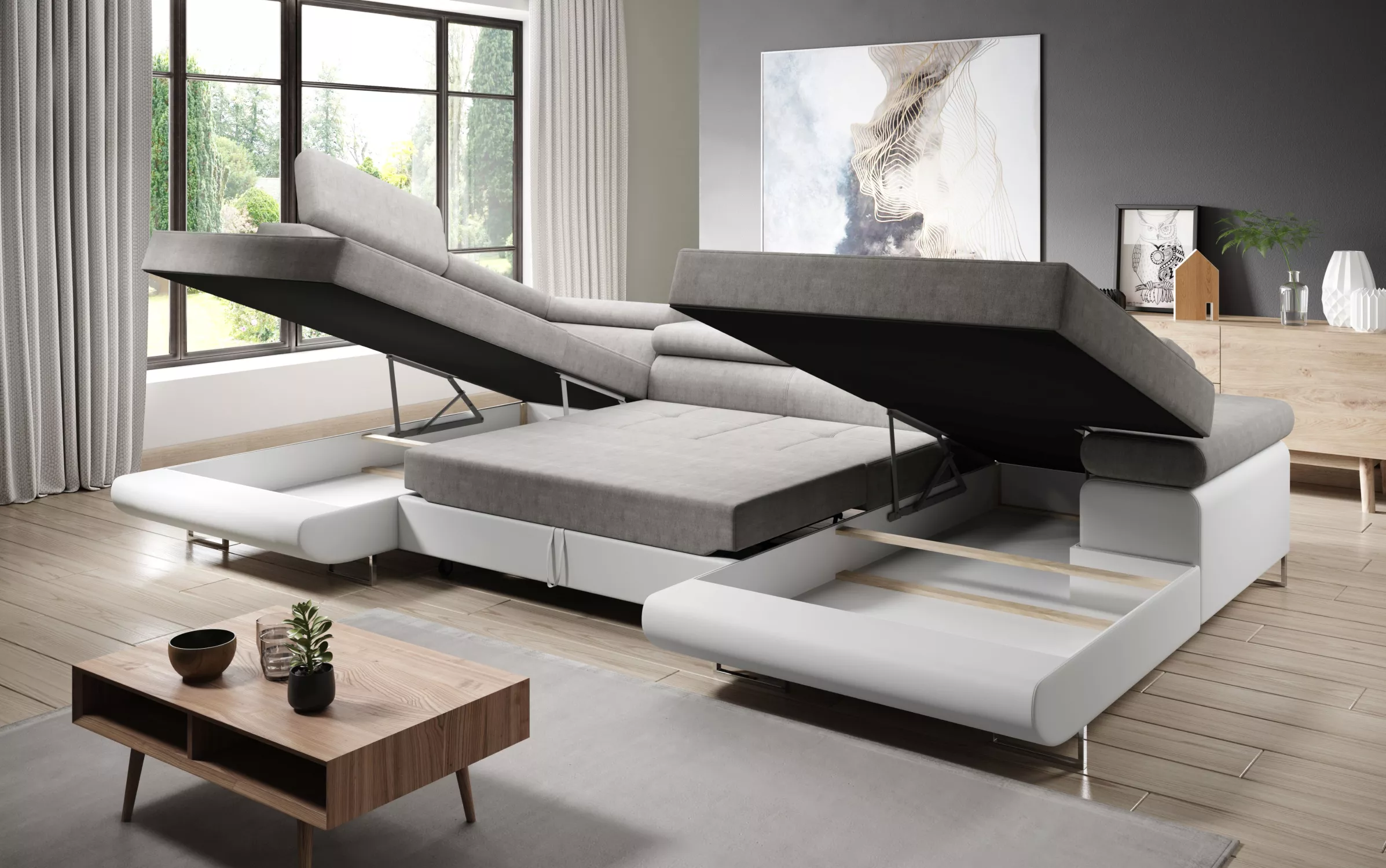 Rozkládací sedací souprava do U PARASKA se díky nastavitelným opěrkám hlavy a příjemné potahové látce stane dokonalým místem pro odpočinek. Sedačka navíc disponuje rozkládací funkcí na lůžko o rozměrech 125x266 cm a 2 úložnými prostory.
