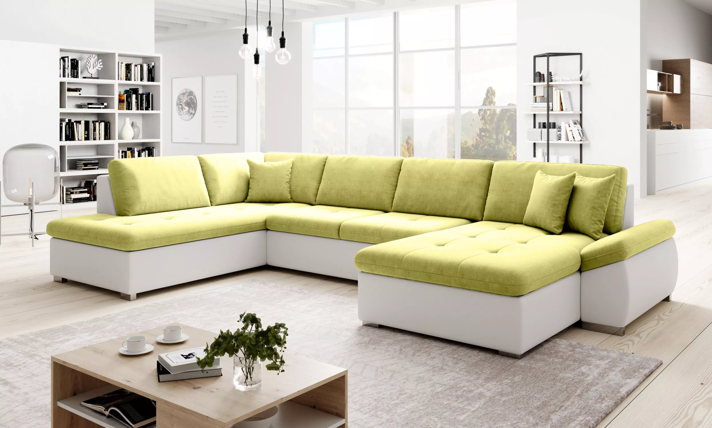 Rozkládací sedací souprava do U ODETTE - bílá / žlutozelená