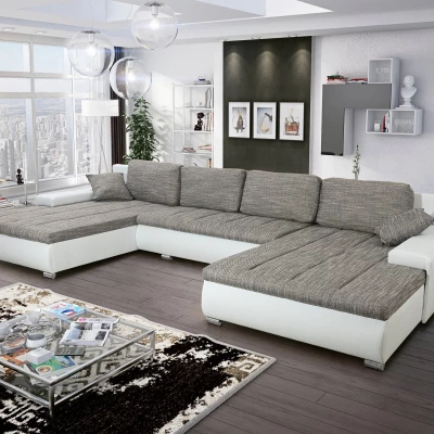 Rozkládací sedací souprava do U CARLINA - bílá / světle hnědá