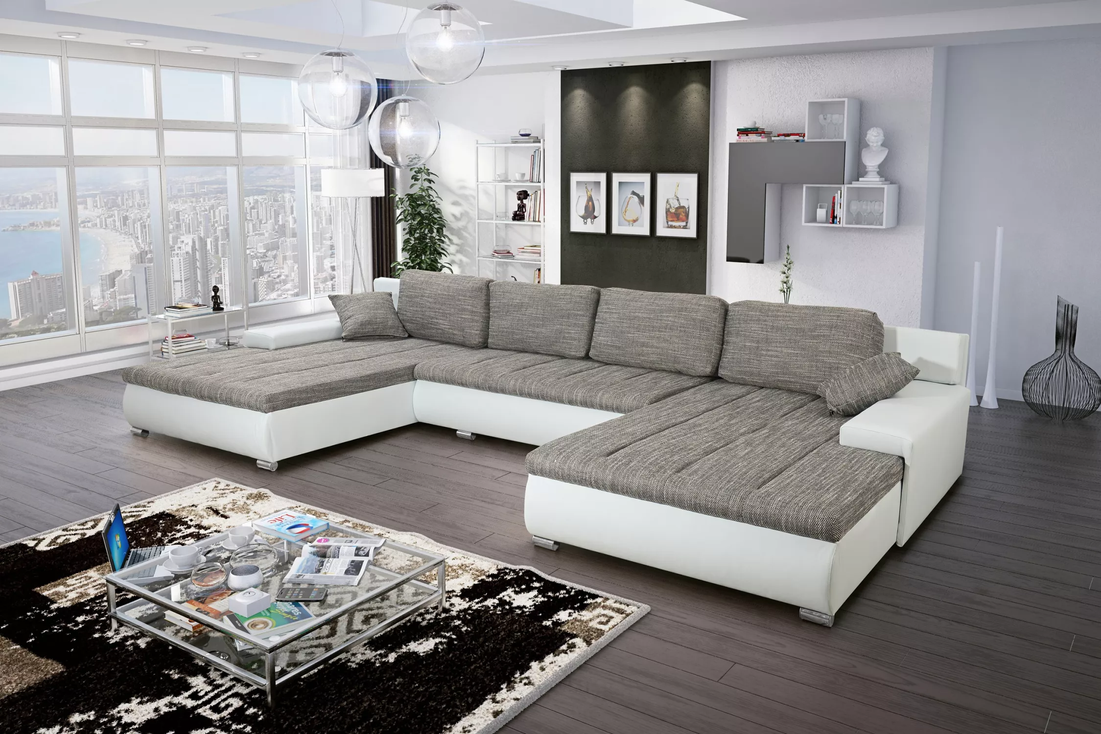 Rozkládací sedací souprava do U CARLINA se vyznačuje moderním designem s hlubokým prošíváním a vysokým komfortem. Opěradlo tvoří volně ložené polštáře, které zpříjemní váš každodenní odpočinek. Zadní část sedačky je čalouněná látkou, což umožňuje její umístění kdekoli v místnosti.