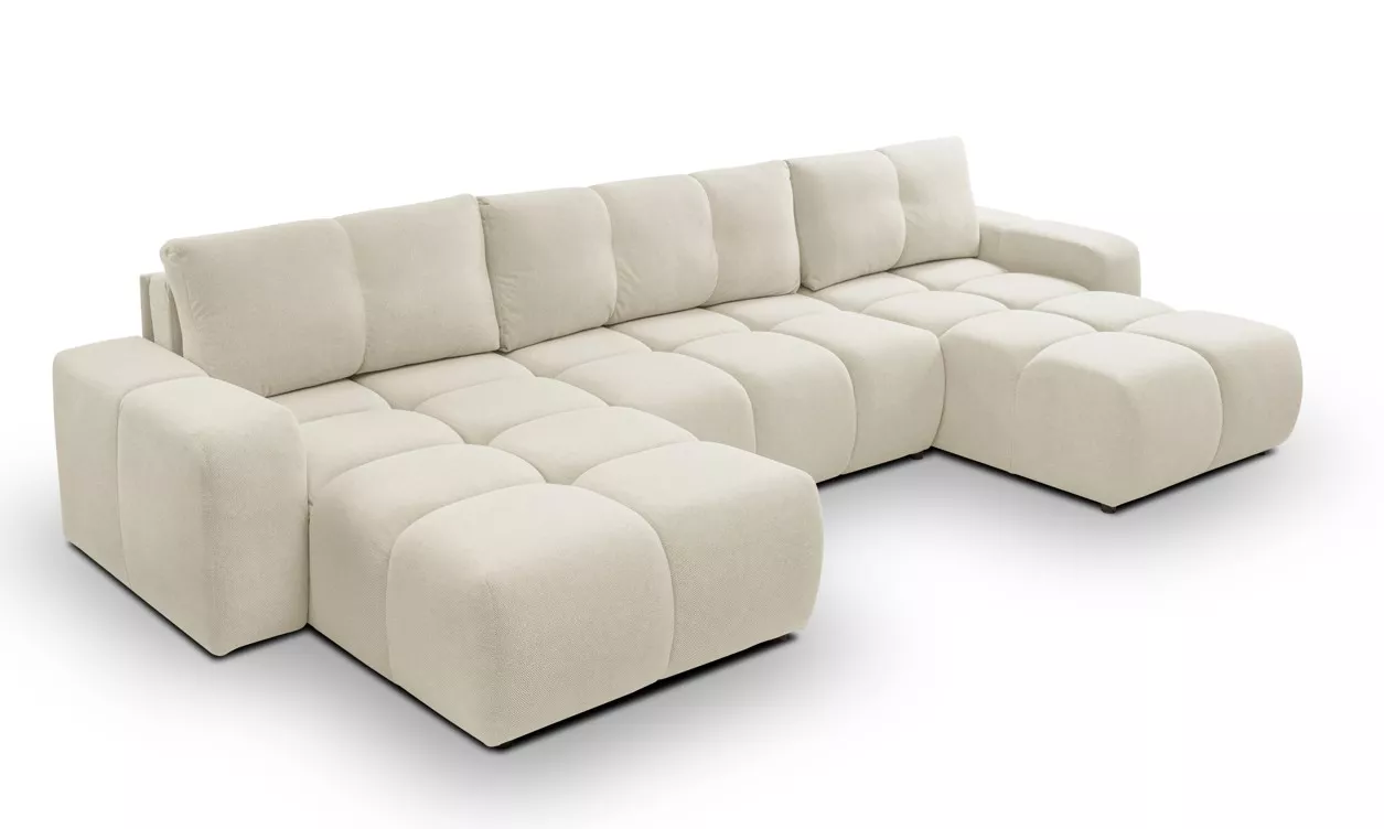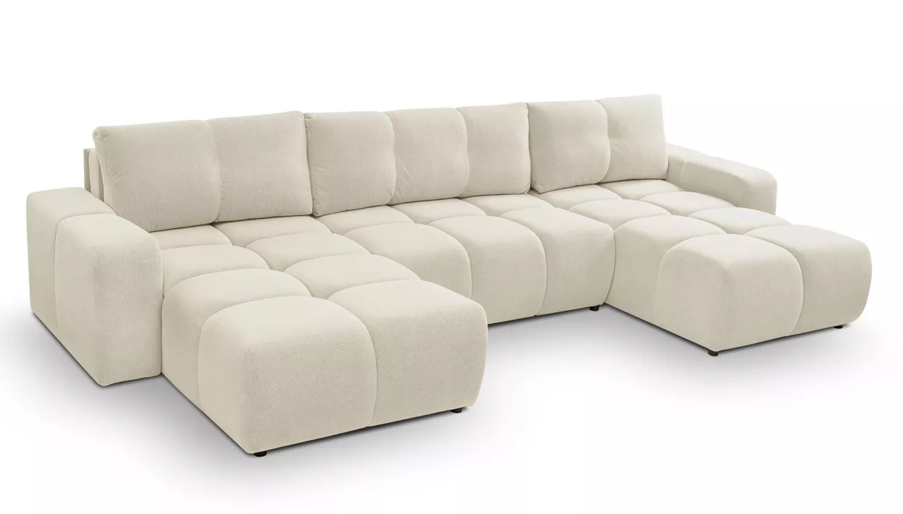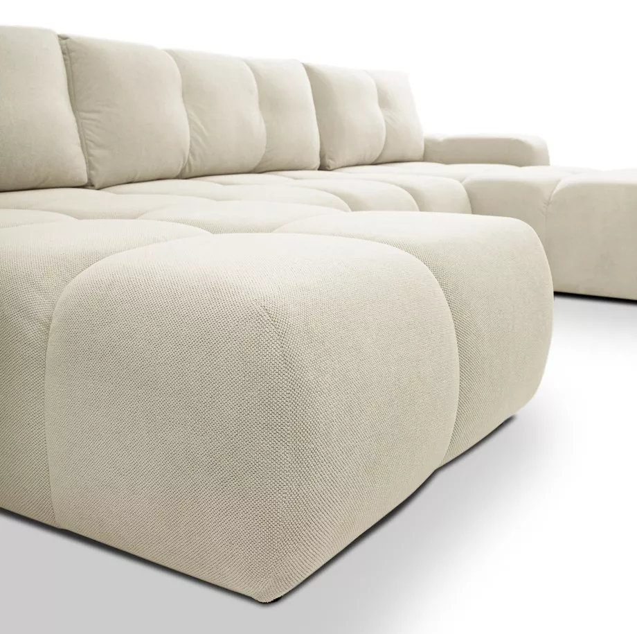 Zamilujte si styl a prostor, který TRURO 2 nabízí! Rozkládací sedačka ve tvaru U vás nadchne velkorysým místem k sezení, měkkými opěrnými polštáři a elegantním prošíváním. Nechybí praktický úložný prostor ani možnost přeměny na pohodlné lůžko. Zaoblené tvary a téměř neviditelné nohy dodávají celé soupravě originální, moderní šmrnc.