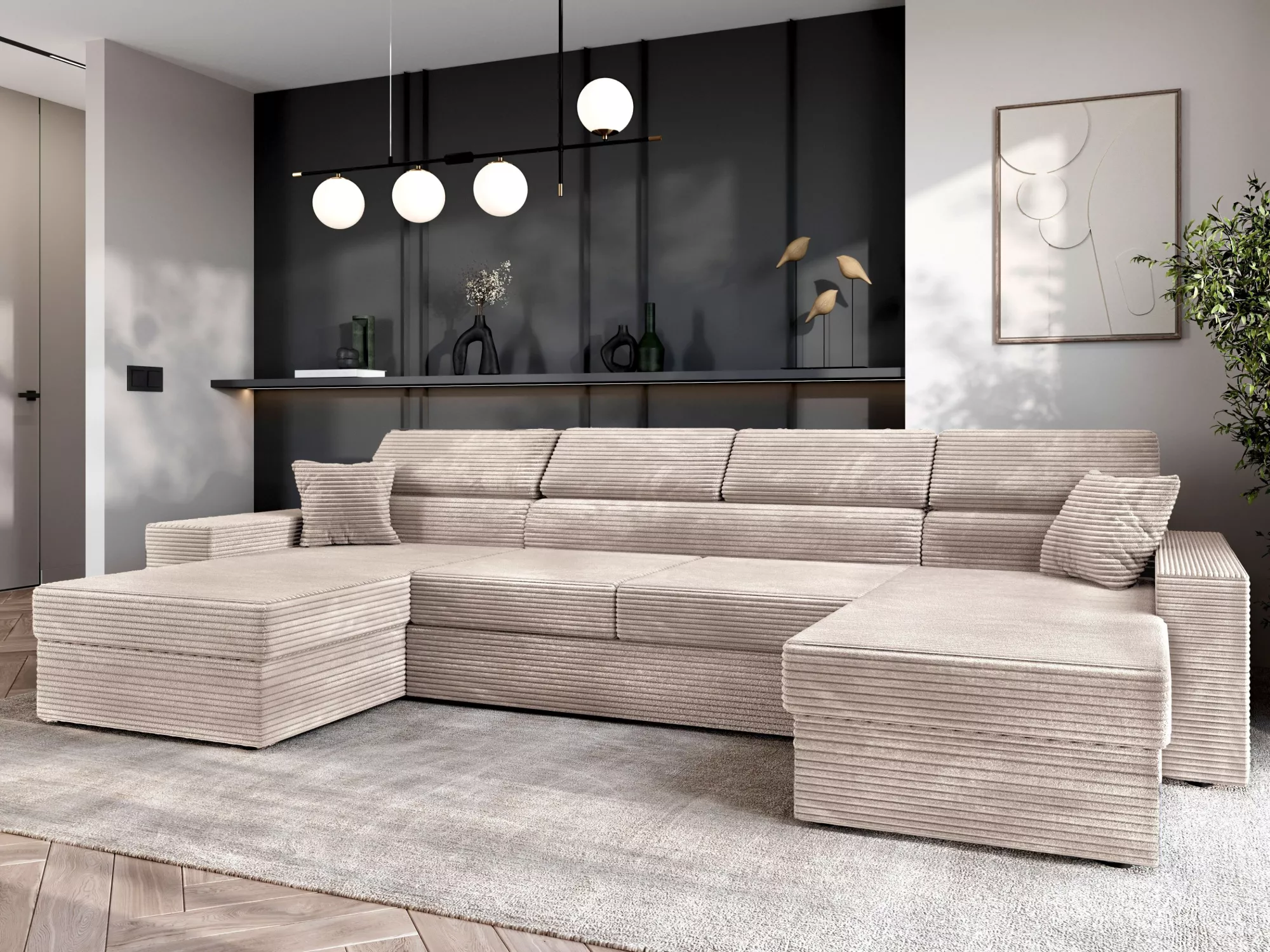 Sedací souprava do U AMIRA s příjemným čalouněním poskytuje maximální pohodlí při odpočinku. Disponuje také 2 úložnými prostory a možností rozložení na lůžko o spací ploše 130x310 cm. Výhodou jsou nastavitelné opěrky hlavy, které zvýší komfort každodenního používání.