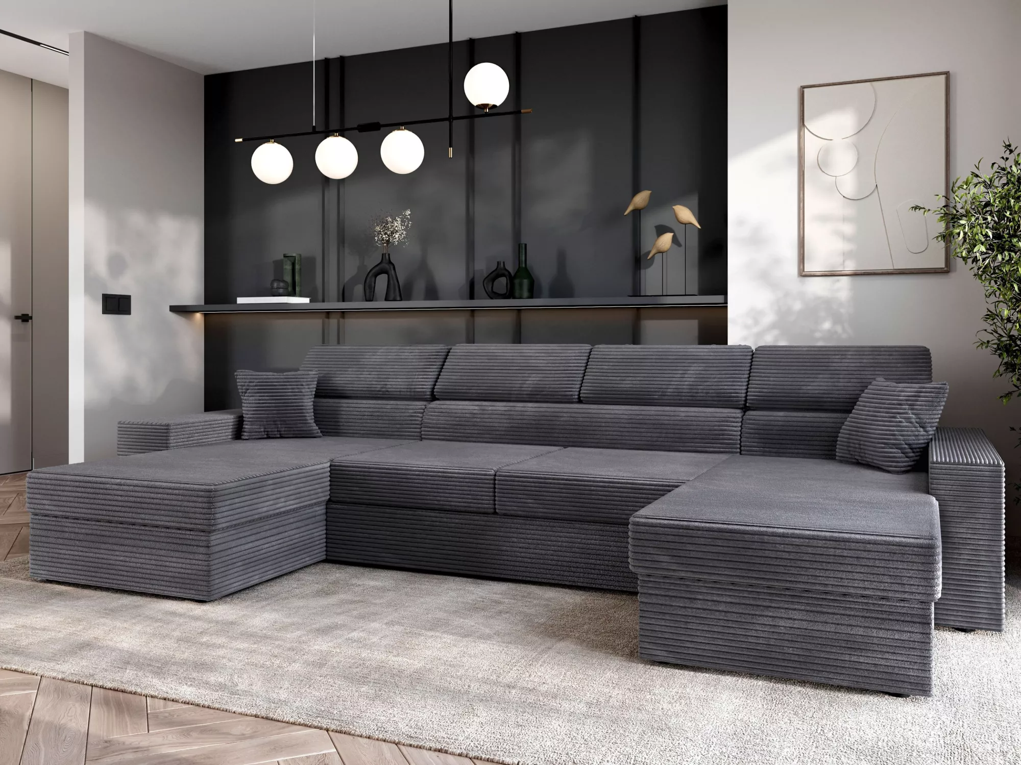 Sedací souprava do U AMIRA s příjemným čalouněním poskytuje maximální pohodlí při odpočinku. Disponuje také 2 úložnými prostory a možností rozložení na lůžko o spací ploše 130x310 cm. Výhodou jsou nastavitelné opěrky hlavy, které zvýší komfort každodenního používání.