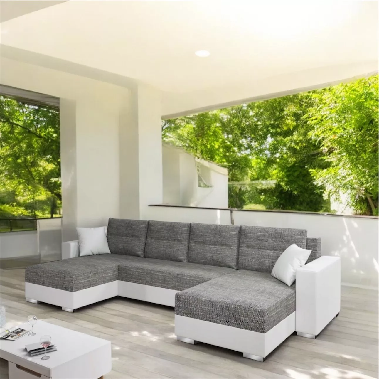 Rozkládací sedací souprava do U LUCASA 3 - světle šedá / bílá eko kůže