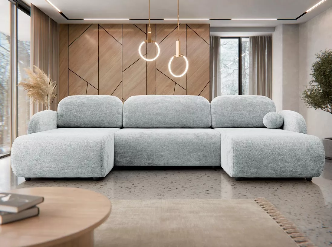 Rozkládací sedačka do tvaru U LACROSSE spojuje elegantní design se špičkovou funkčností. Zaoblené linie dodávají sedačce lehkost a jemný charakter. Úložný prostor uschová přikrývky i polštáře, zatímco volně ložené opěrné polštáře zvyšují pohodlí při sezení. Díky rozkládací funkci jednoduše vytvoříte prostorné lůžko o rozměrech 140x300 cm, ideální pro lenošení i každodenní spaní.