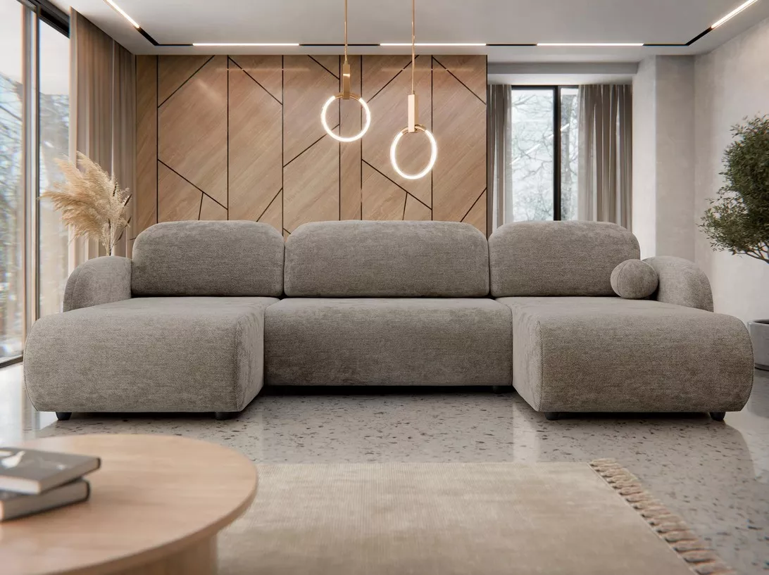 Rozkládací sedačka do tvaru U LACROSSE spojuje elegantní design se špičkovou funkčností. Zaoblené linie dodávají sedačce lehkost a jemný charakter. Úložný prostor uschová přikrývky i polštáře, zatímco volně ložené opěrné polštáře zvyšují pohodlí při sezení. Díky rozkládací funkci jednoduše vytvoříte prostorné lůžko o rozměrech 140x300 cm, ideální pro lenošení i každodenní spaní.