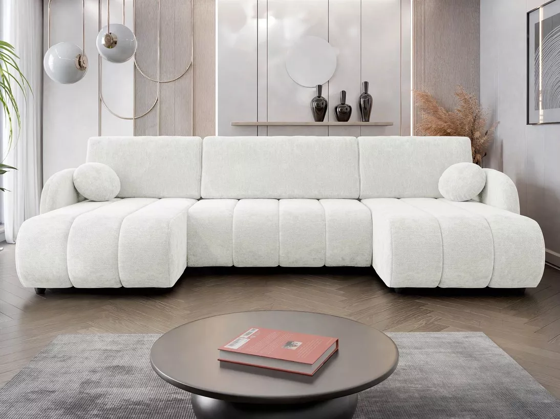 Rozkládací sedačka do tvaru U LEESBURG spojuje moderní design s maximálním komfortem a je ideální pro početnou rodinu či společné chvíle s přáteli. 2 prostorné lenošky a široký sedák nabízejí pohodlí při sezení i relaxaci vleže, přičemž po rozložení vznikne plnohodnotné lůžko pro občasné i každodenní spaní. Integrovaný úložný prostor uschová ložní prádlo, polštáře nebo deky a udrží obývací pokoj vždy dokonale upravený.