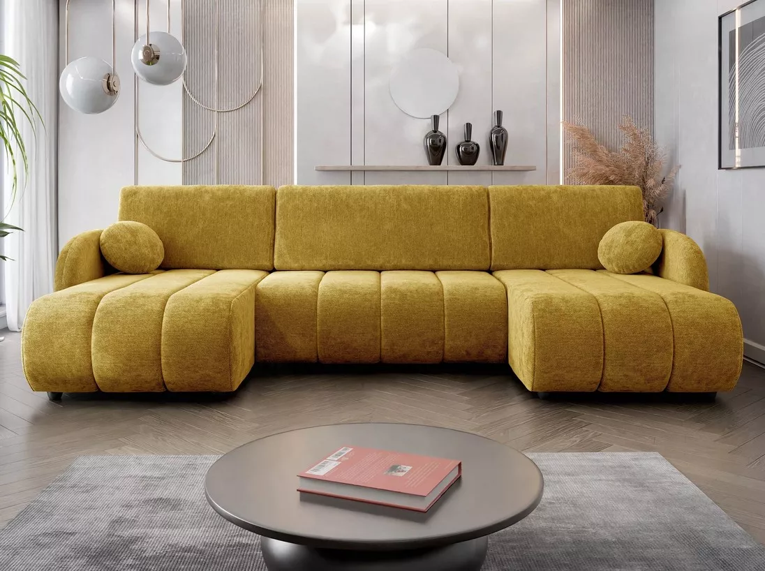 Rozkládací sedačka do tvaru U LEESBURG - hořčicová