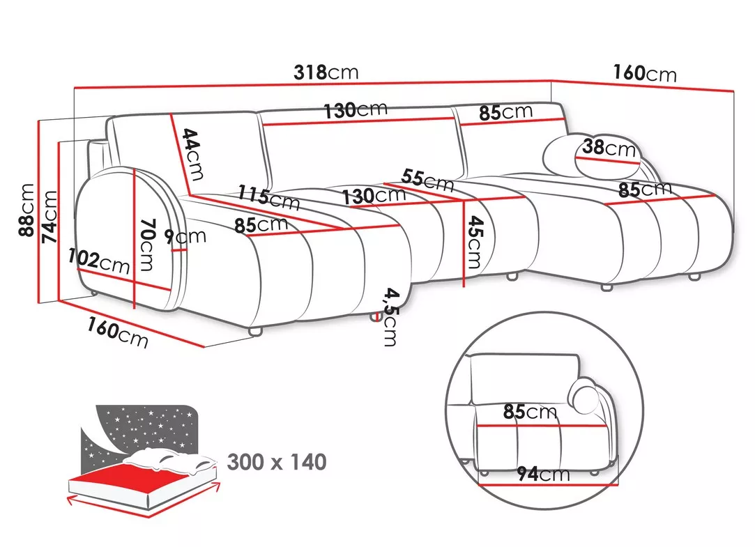 Rozkládací sedačka do tvaru U LEESBURG spojuje moderní design s maximálním komfortem a je ideální pro početnou rodinu či společné chvíle s přáteli. 2 prostorné lenošky a široký sedák nabízejí pohodlí při sezení i relaxaci vleže, přičemž po rozložení vznikne plnohodnotné lůžko pro občasné i každodenní spaní. Integrovaný úložný prostor uschová ložní prádlo, polštáře nebo deky a udrží obývací pokoj vždy dokonale upravený.