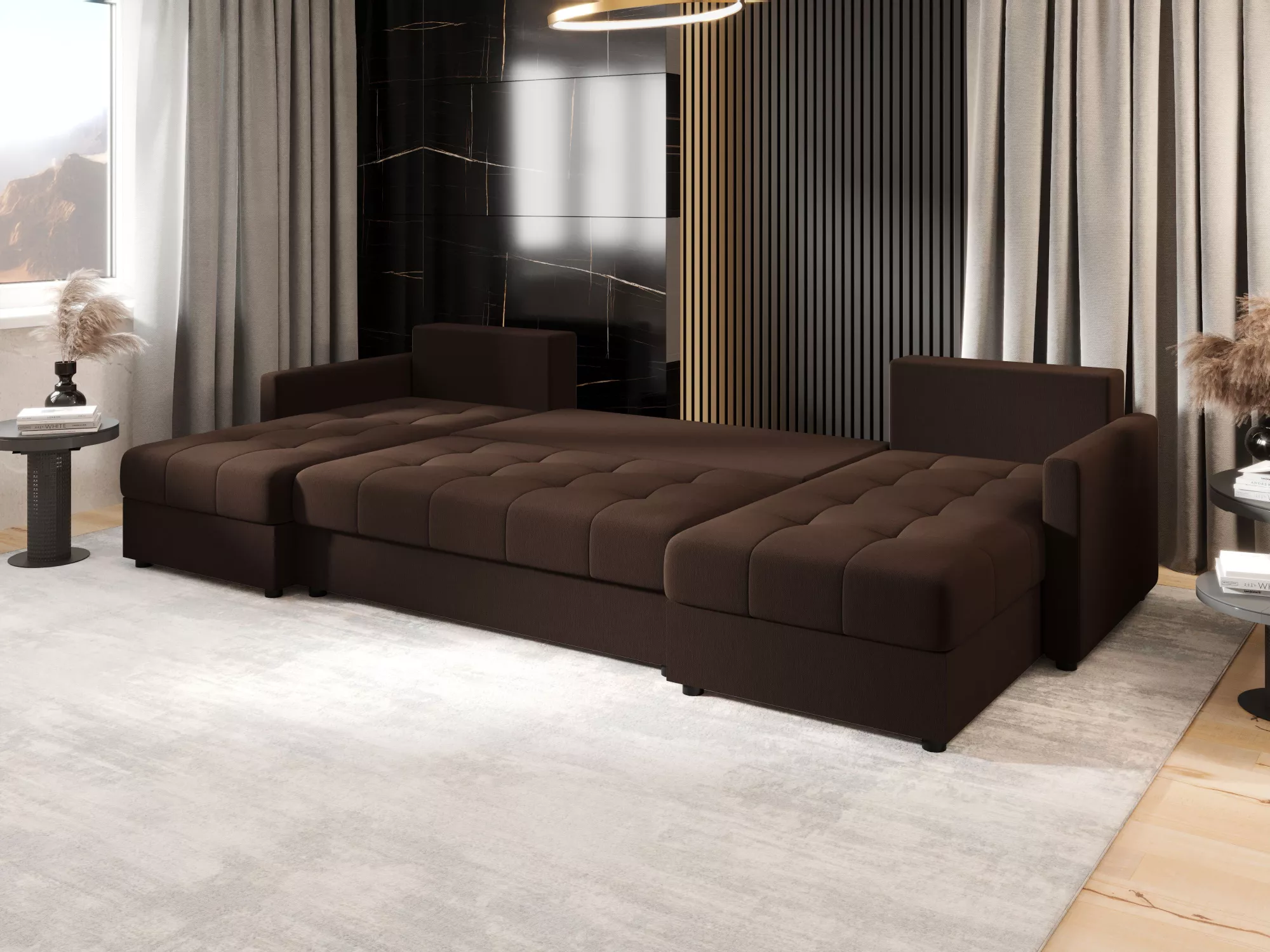 Rozkládací sedací souprava do U ADELINDE - tmavě hnědá
