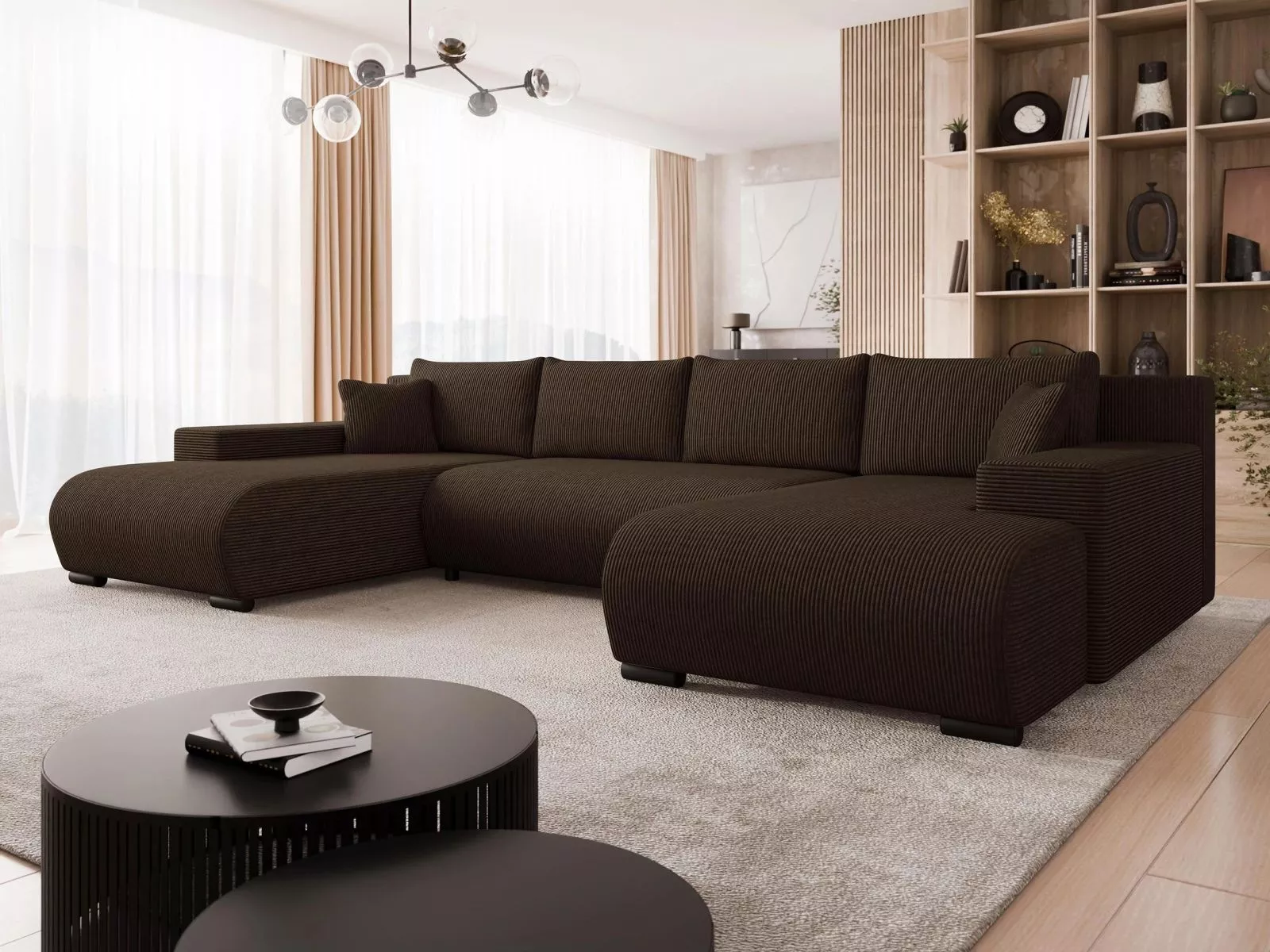 Moderní rozkládací sedačka do tvaru U SELAH - čokoládová 1
