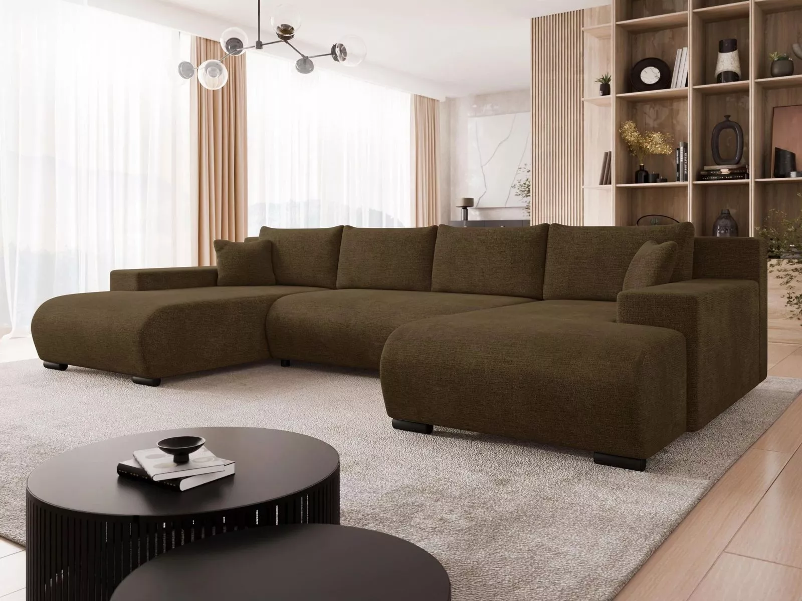 Moderní rozkládací sedačka do tvaru U SELAH - čokoládová 2