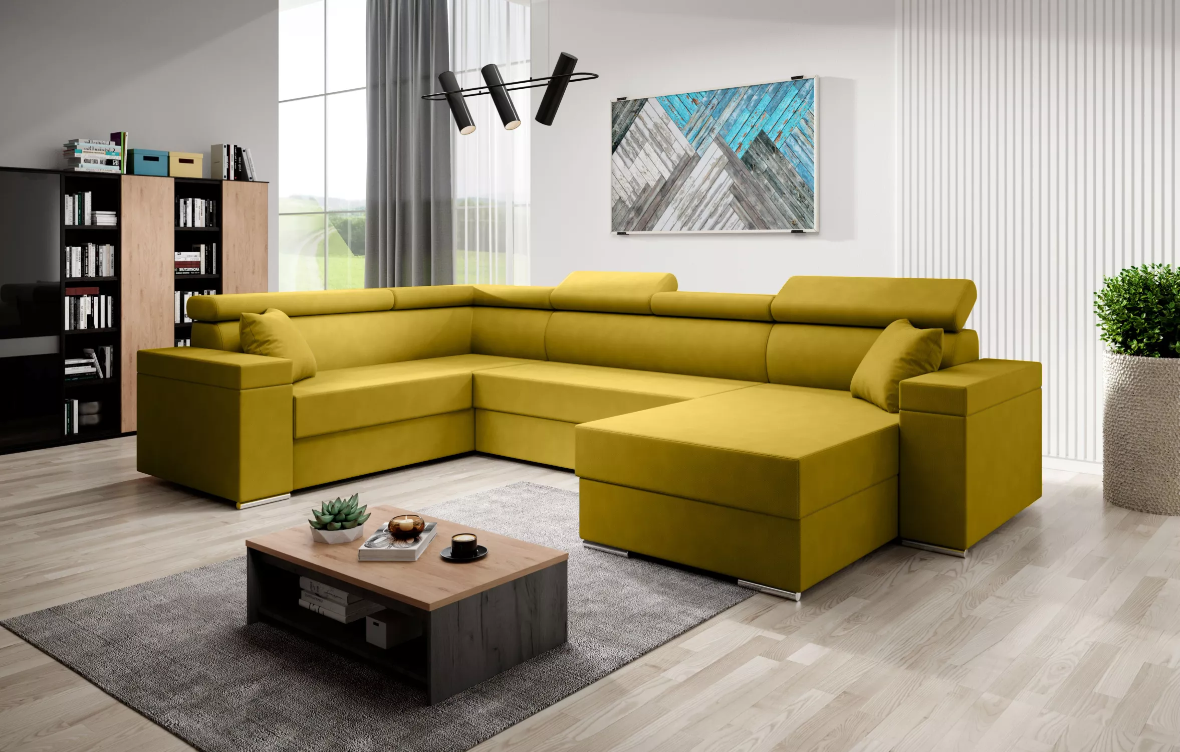 Rozkládací sedací souprava do U LEXIA - žlutozelená, levý roh