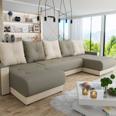 Rozkládací sedačka do U NORRA - béžová / šedá