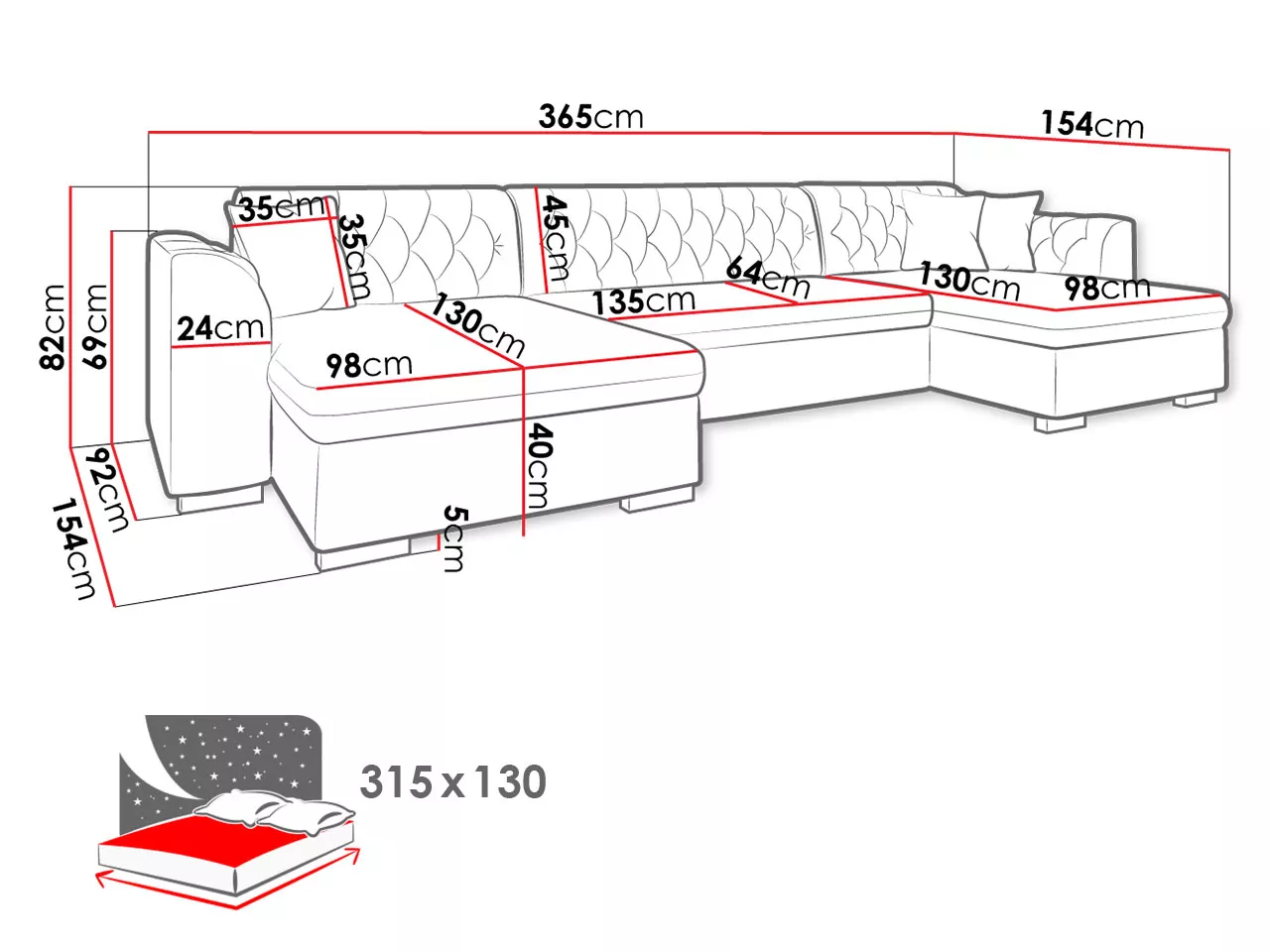 Sedačka AURI navržená do písmene U je přizpůsobena na každodenní spaní. Jednoduchým rozložením získáte spací plochu o rozměrech 130x315 cm. O vysoký komfort při odpočinku se postará velmi měkký a pohodlný sedák. Zadní část sedačky je čalouněná látkou, což umožňuje její umístění kdekoli v místnosti.