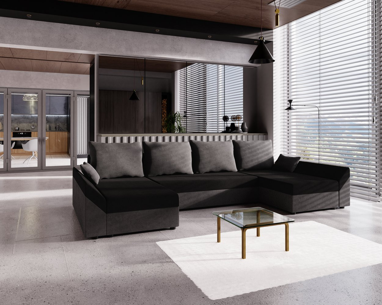 Sedačka KORNELIE zkonstruovaná do písmene U nabízí funkci každodenního spaní o lůžku 130x268 cm. Součástí sedačky jsou 3 šikovné úložné prostory na lůžkoviny a polštáře se snímatelným potahem na zip. Zadní část sedačky je čalouněná látkou, což umožňuje její umístění kdekoli v místnosti.