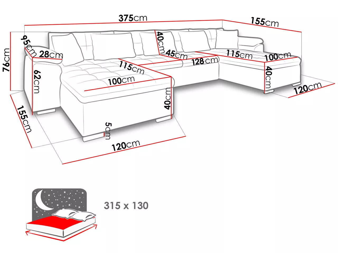 Sedačka BALTIMORE navržená do písmene U je přizpůsobena na každodenní spaní. Jednoduchým rozložením získáte spací plochu o rozměrech 130x315 cm. Volně ložené měkké polštáře a široké lenošky zaručují vysoký komfort. Zadní část sedačky je čalouněná látkou, což umožňuje její umístění kdekoli v místnosti.