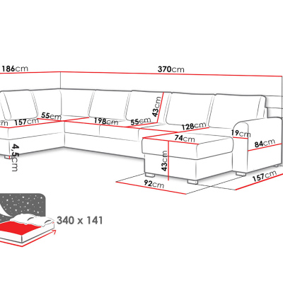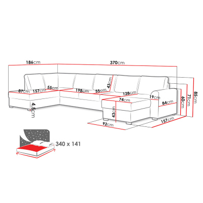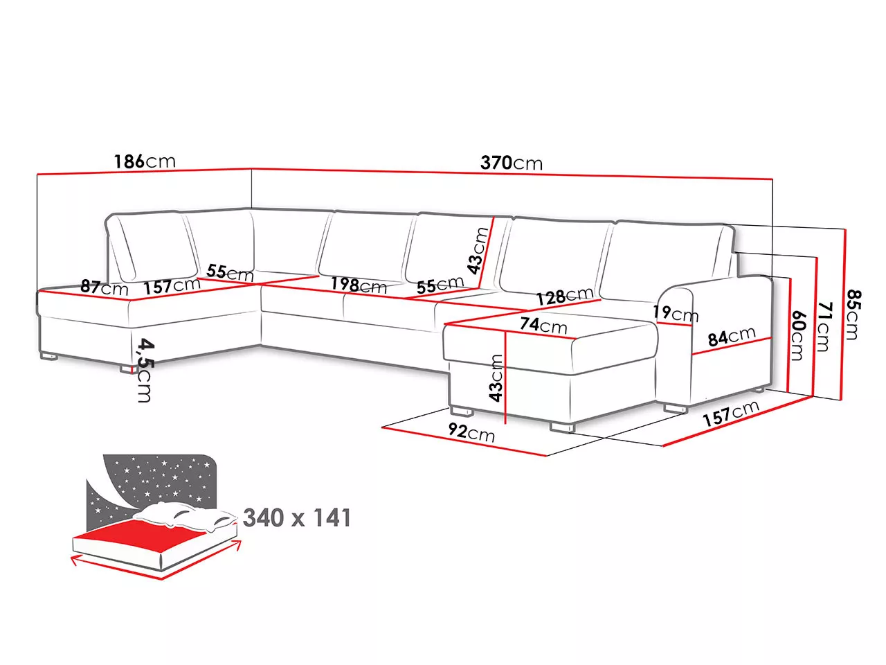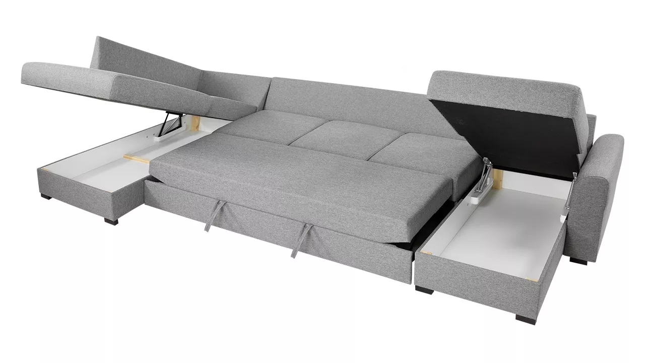 Sedačka TUCSON 2 zkonstruovaná do písmene U nabízí dostatek místa pro odpočinek po dlouhém dni. Je vybavena 2 úložnými prostory a funkcí na každodenní spaní o spací ploše 141x340 cm. Součástí sedačky jsou polštáře se snímatelným potahem na zip.