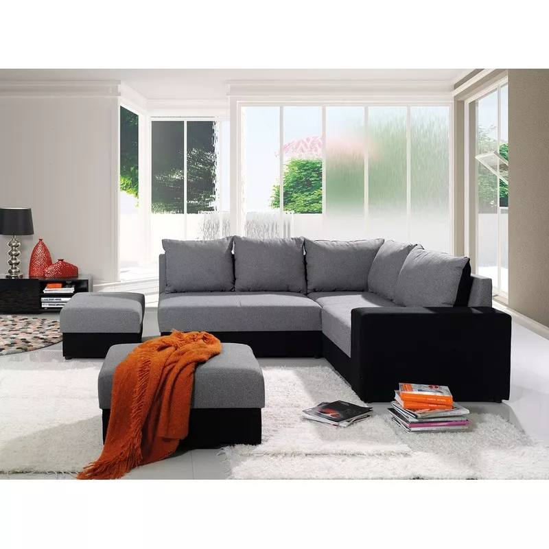 Rohová sedací souprava s taburetem CORTLAND 1 - černá / světlá šedá, pravý roh