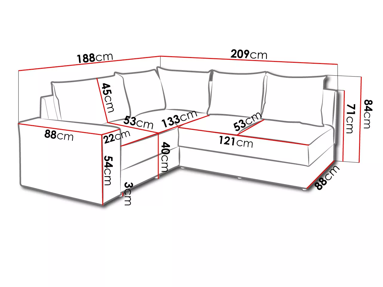 Rohová sedací souprava CORTLAND 1 se vyznačuje stylovým designem. Sedačka, která je k dispozici v nejmódnější barevné kombinaci, zkrášlí interiér vyzdobený v moderním stylu. Dá vám prostor na pohodlný odpočinek po náročném dni a umožní vám trávit volný čas s přáteli a rodinou. Měkké polštáře vytvářejí pohodlné opěradlo, které je nezbytným prvkem při každodenním používání. Při výrobě tohoto nábytku byla použita polyuretanová pěna, bonelové pružiny a stabilní dřevěný rám.
