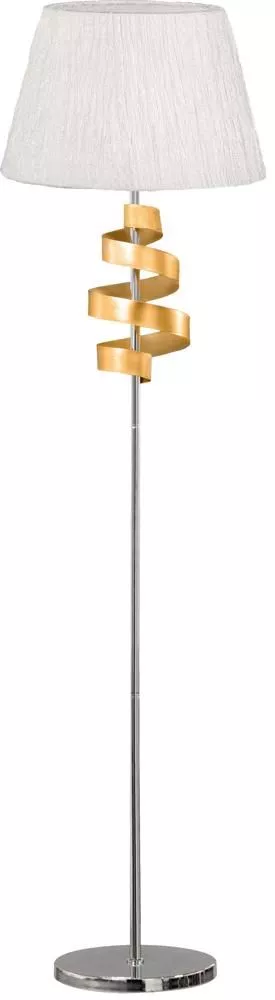 Dodejte svému prostoru elegantní lesk se stojací lampou DENIS! Chromovaná konstrukce se zlatou stuhou vytváří noblesní vzhled, který doplňuje bílé zvlněné stínidlo s jemným, klasickým charakterem. Díky příjemnému rozptylu světla se skvěle hodí do obývacího pokoje nebo ložnice, kde dodá interiéru moderní a zároveň útulný dojem. Určeno pro žárovku s paticí E27 a maximálním výkonem 60 W. Pro úsporu el. energie doporučujeme osadit úspornou LED žárovkou. Krytí IP20 značí vhodnost použití v interiéru.