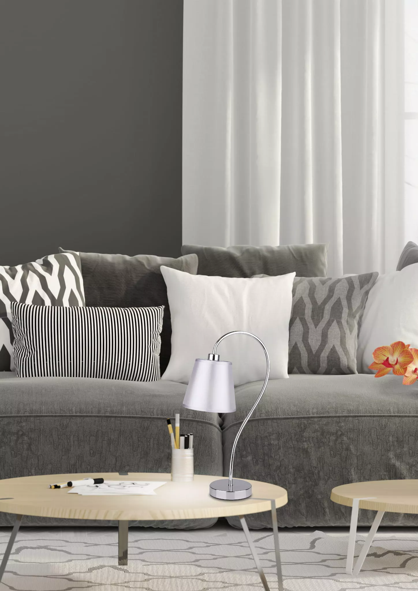 Vneste do svého interiéru nádech elegance se stolní lampičkou LUK, která skvěle poslouží na nočním stolku, pracovním stole i v obývacím pokoji jako jemné doplňkové světlo! Lesklý chromovaný podstavec je doplněný stínidlem v šedo-stříbrné barevné kombinaci, která podtrhuje moderní design a čisté linie. Určeno pro žárovku s paticí E14 a maximálním výkonem 40 W. Pro úsporu el. energie doporučujeme osadit úspornou LED žárovkou. Krytí IP20 značí vhodnost použití v interiéru.