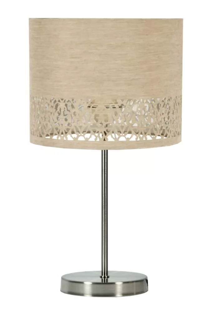 Zvýrazněte atmosféru svého domova se stolní lampičkou ARABESCA, která skvěle poslouží na nočním stolku i jako jemné doplňkové světlo v obývacím pokoji! Chromovaná konstrukce nese krémové textilní stínidlo s jemným dekorativním vzorováním, které působí elegantně a vytváří měkké, útulné osvětlení. Určeno pro žárovku s paticí E27 a maximálním výkonem 60 W. Pro úsporu el. energie doporučujeme osadit úspornou LED žárovkou. Krytí IP20 značí vhodnost použití v interiéru.