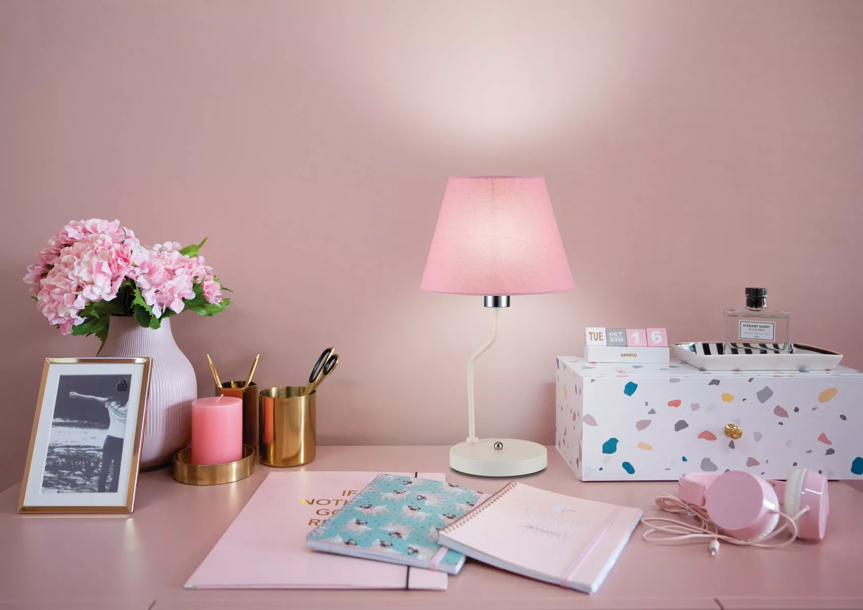 Stolní moderní lampa LUMINOR - 1xE14, 60W, růžová / bílá