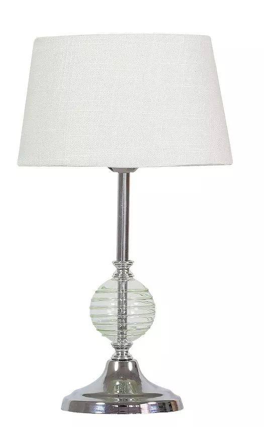 Objevte elegantní osvětlení do ložnice nebo obývacího pokoje s lampičkou FERO! Kovová konstrukce doplněná dekorativní skleněnou koulí a textilním stínidlem přináší moderní vzhled a jemný svěží nádech. Určeno pro žárovku s paticí E27 a maximálním výkonem 60 W. Pro úsporu el. energie doporučujeme osadit úspornou LED žárovkou. Krytí IP20 značí vhodnost použití v interiéru.