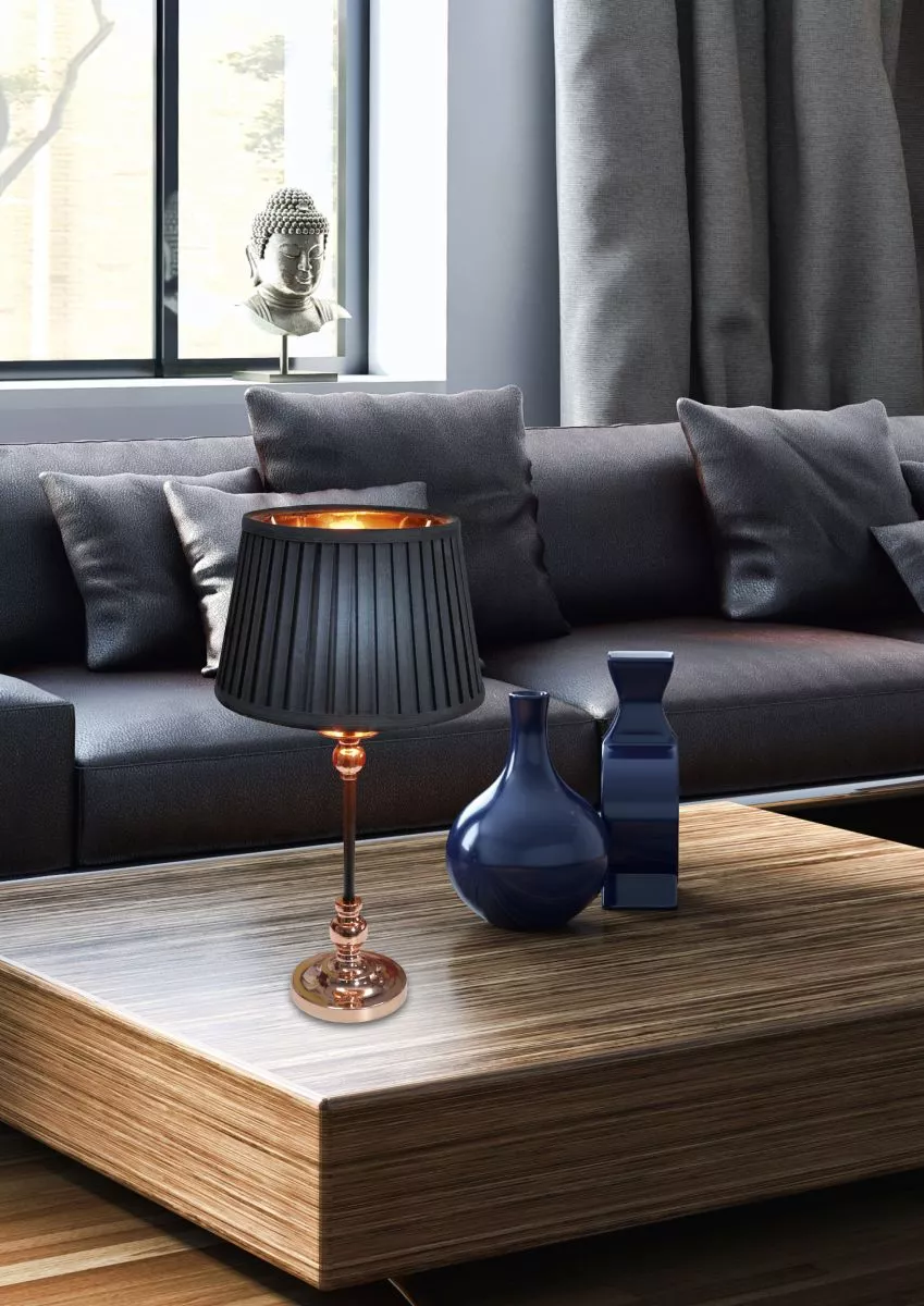 Zútulněte svůj domov stolní lampičkou AMORE, která vytvoří příjemné světlo při večerním čtení i jako elegantní doplňkové osvětlení v ložnici nebo obývacím pokoji! Černo-měděná konstrukce s textilním skládaným stínidlem a leskle měděným vnitřkem působí moderně, tajemně a dodá prostoru výjimečnou atmosféru. Určeno pro žárovku s paticí E27 a maximálním výkonem 60 W. Pro úsporu el. energie doporučujeme osadit úspornou LED žárovkou. Krytí IP20 značí vhodnost použití v interiéru.