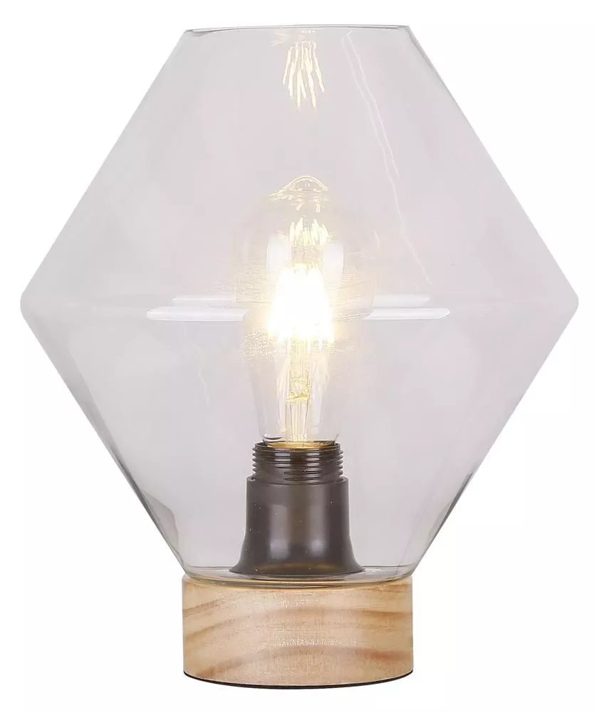 Stolní skandinávská lampa KARO - 1xE27, 60W, přírodní dřevo / čirá